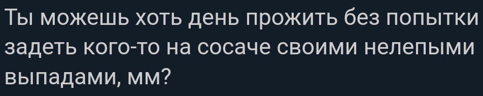 >>678688 >>678689 >>678696 Клоун, ты же постоянно ноешь, что этот тред говно, тут одни шизики, ты джва года уже сюда не заходишь, и вообще, нужно свою конфочку пилить чтобы найти в ней баристу и няшиться с ним под хвостик, но почему-то все равно здесь появляешься. Плачешь и колешься, но продолжаешь жрать кактус?