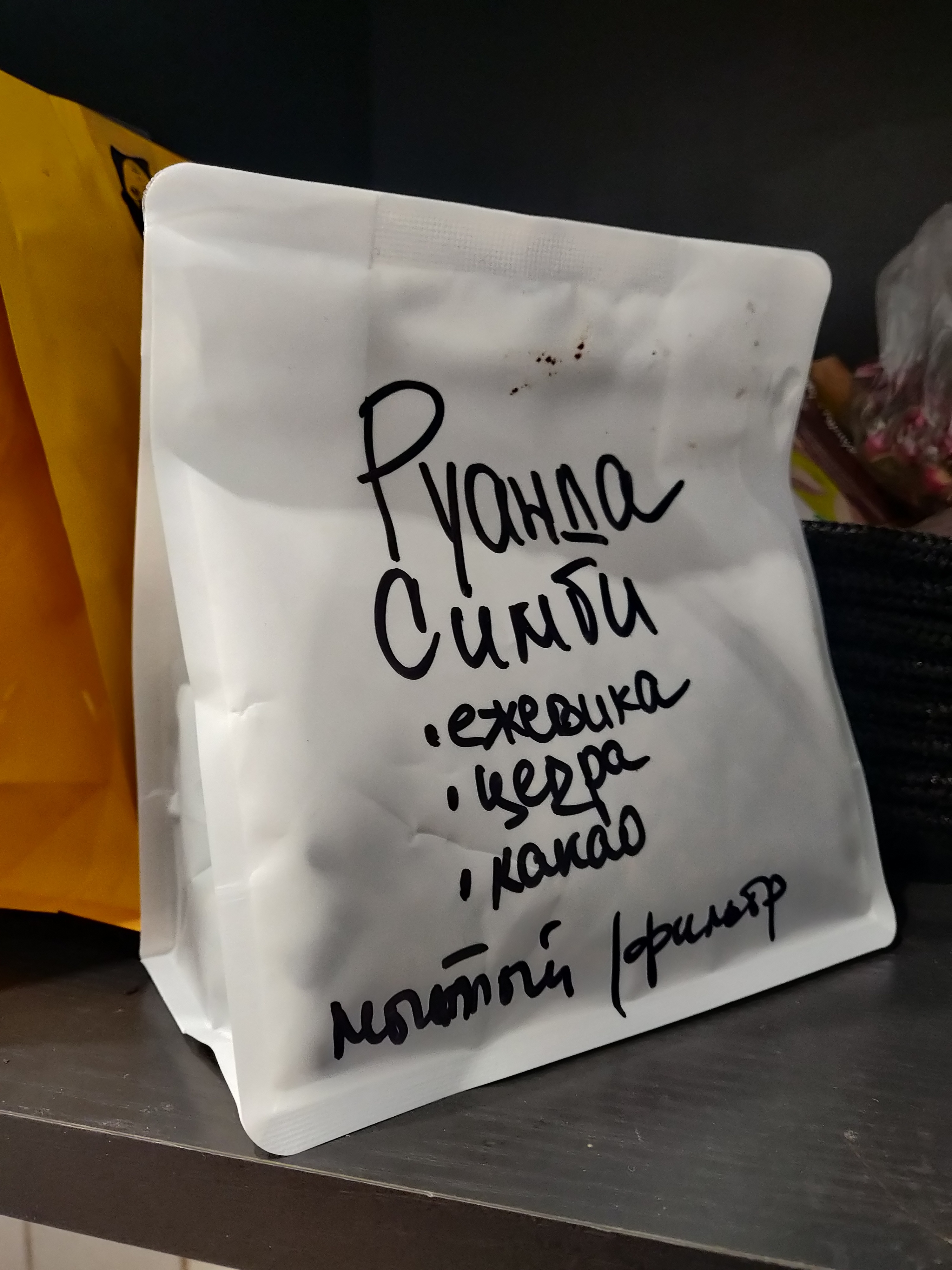 Интересную хуйню купил. Ни бренда, ни юрлица, вот прям так от руки накалякано. В СПб прям за углом от Зимнего. Чернила вроде, сама кофейня нормальная и хипсторская немного, просто зерно говорят для себя варят, а на продажу только для таких долбоёбов как я. На вкус прям улёт, очень кислотный и сладкий как я люблю.