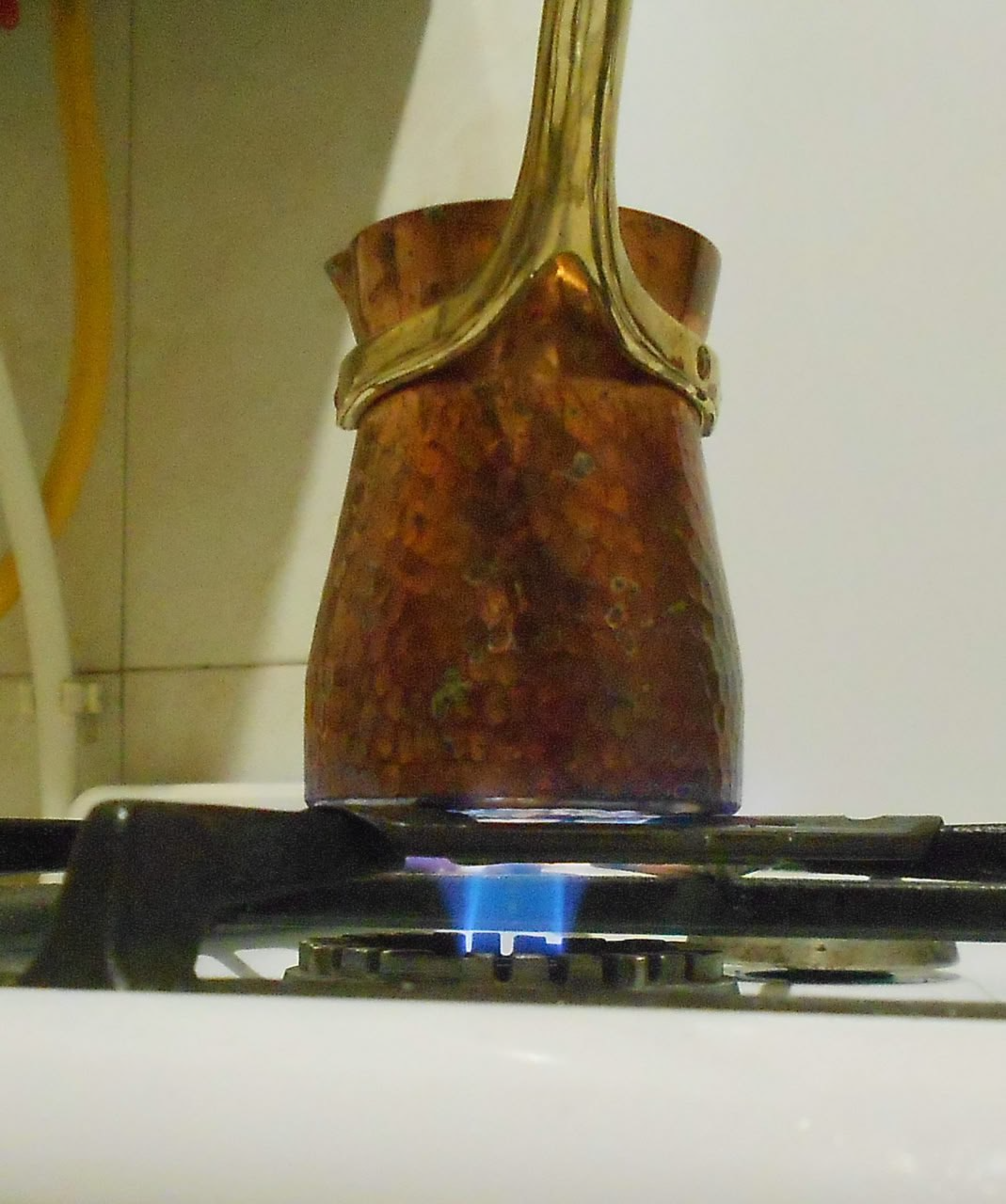 Вся суть меди в турках это хорошая теплопроводность, чтобы воду грело по всей высоте. Это не очень интутивно, ведь казалось бы, ну вода у дна нагрелась, поднялась вверх, все нормально перемешалось. Только вот на практике нихуя. У дна уже булькает во всю, а сверху вода далека от 95 градусов. Это хуево.