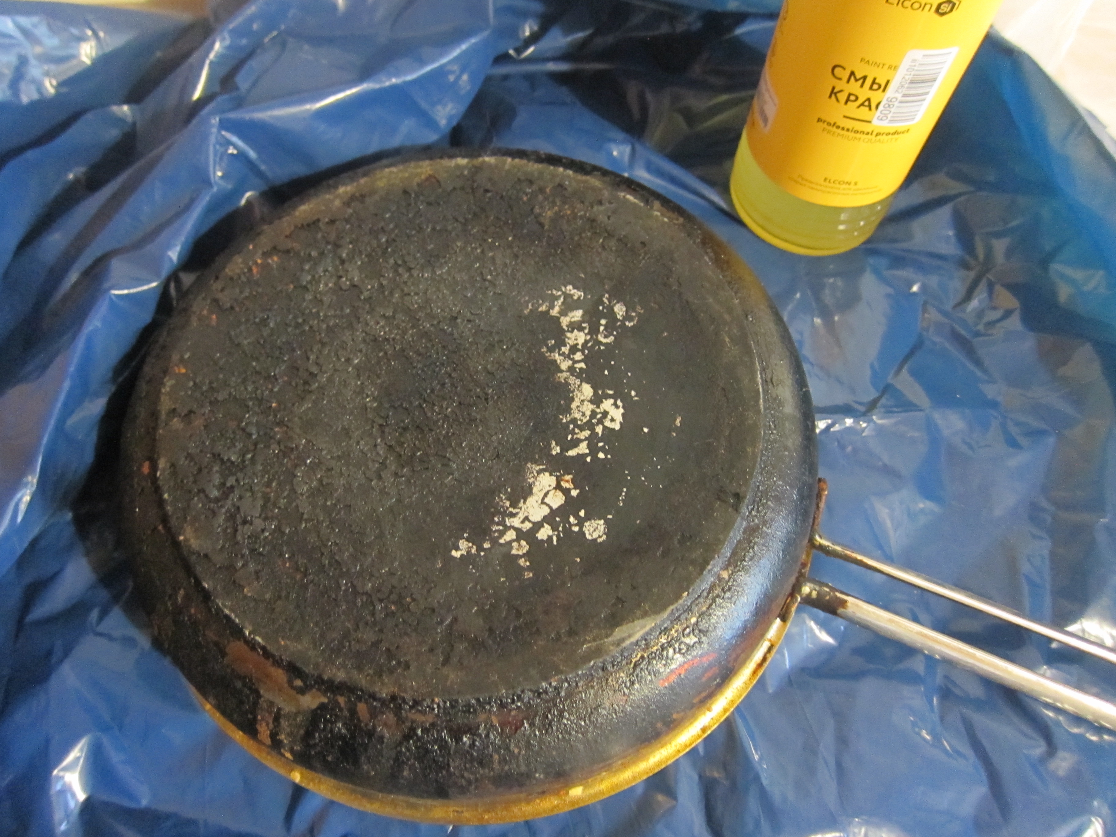На фото взялся чистить давно засратую сковороду из нержи, почти ей не пользовался. Пару раз намазал смывкой для краски, результат уже ничего так.