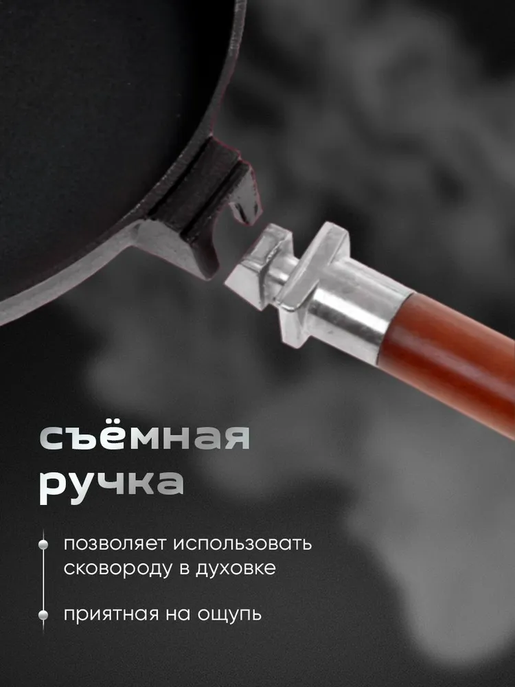 С литой ручкой удобно ставить в духовку, главное потом не забыть прихавткой накрывать ручку, когда на столе стоит