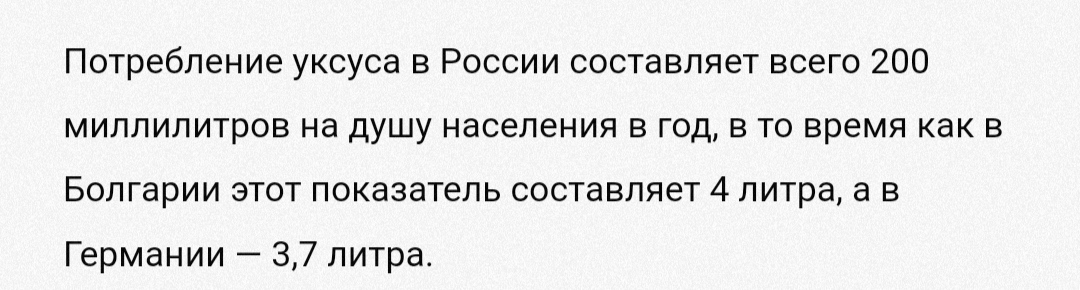 >>562368 Почему это я шиз? Про уксус правда. У них там ещё с римлян принято жрать его бутылками. Римляне вроде его при каждом приеме пищи жрали, эти тоже. В Японии, США, Корее и Европе даже напитки сейчас продаются с уксусом типа помогает худеть, там малое содержание уксуса, но сама суть, что там щас популярны всякие типа чаи Нестле с уксусом. У нас в основном история с уксусом это закрывания огурцов в банках и типа того, а в пище почти никто не использует. Не зря у них и хаинз уксусоввй это пиздец какой популярный бренд.