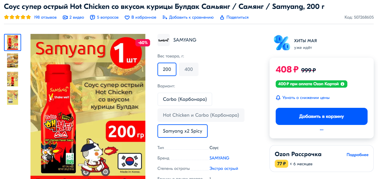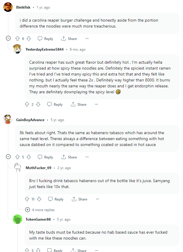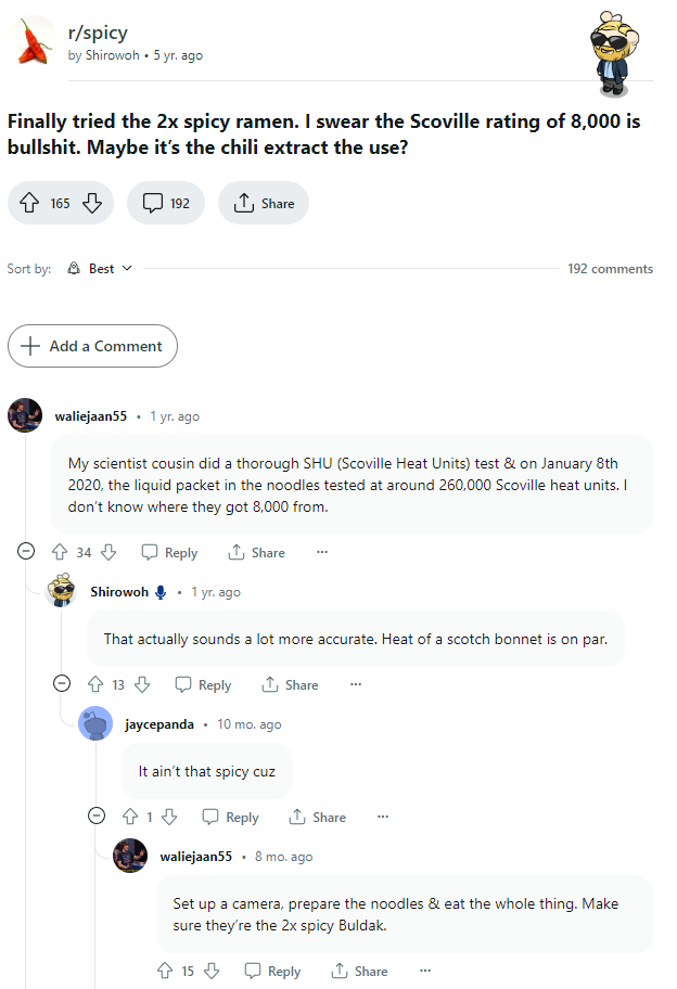 Палю хидден жем для любителей остроты. Да еще и за копейки. 200р на озоне (искать по слову samyang). Скорее всего окажется острее всего, что вы до этого пробовали. На скринах еще обсуждают старую версию, где заявлялось про 8.800 сковиллей, в новой заявляют про 10к.