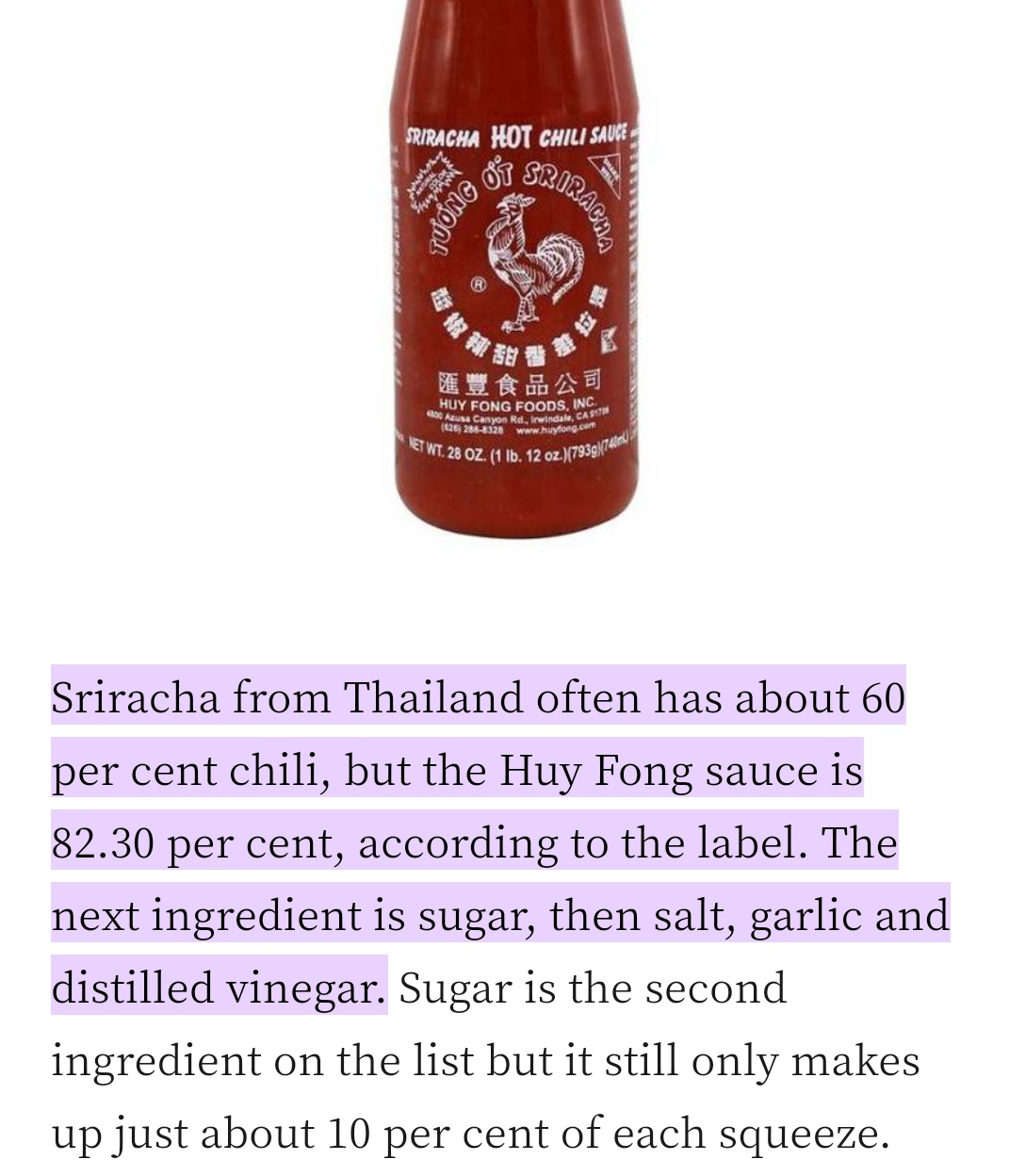 >>591182 Петухов бывает 2 вида. Один выпускается тайской фирмой для рынка США и Европы. Там менее 50 чили. Второй вид вьетнамский на твоём пикриле. А вьеты ебашут самые адовые соусы во всей ЮВА.