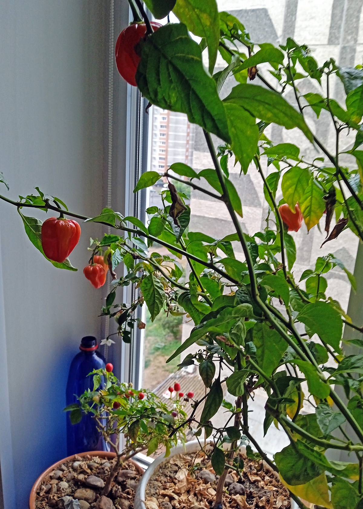 >>576079 Баловался у мамки в парнике и у себя на подоконнике под фитолампой. Растил тринидад скорпион, хабанеро, халапеньо и несколько нонейм сортов типа огонек. Даже пару фоток нашел, остальные проебал где-то. В теплице/парнике или на южном огороде без заебов растет халапеньо, он от обычного болгарского перца по сложности не особо отличается, любая бабка вырастит. На окне можно без особых проблем поднять хабанеро и любые декоративные перцы (но всякие огоньки невкусные и жрать там особо нечего, оч тонкие стенки плодов). Хабанеро достаточно обильно плодоносит уже в первый год, острота оч порядочная, вызревает ощутимо быстрее суперхотов. В принципе, если рассаду сделать рано, то он и в теплице средней полосы норм должен себя чувствовать, а к осени уже созреть. Суперхоты на окне вполне реально, но долго пиздец, надо удобрять по уму, светить много, куст формировать. На ютубах ищи, там всё есть. В теплице я бы стал ими заморачиваться только если бы был прям охуеть энтузиастом.