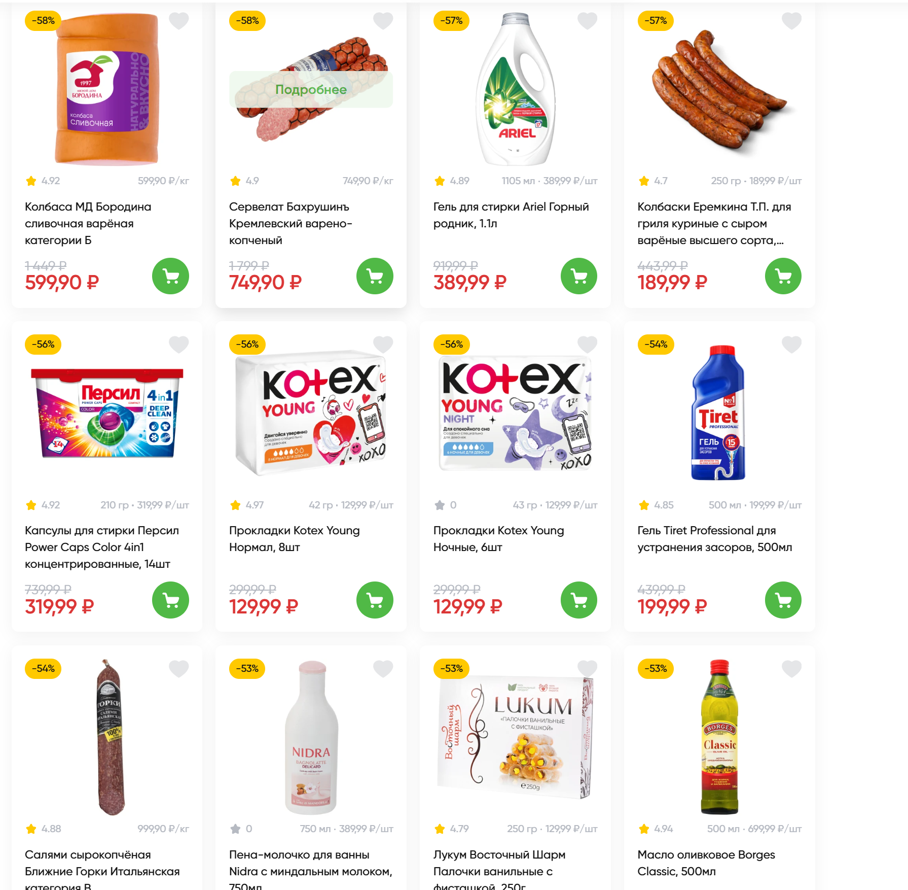 Из хорошего сейчас всякая доставка и Вкуссвилл. Дороговато, но без маспа почти. Была, ксати, новость что Вкусвилл отъел часто аудитории у Азбуки, поэтому это теперь ссамоподдерживающийся процесс. Народ идёт в ВВ из Азбуки, там выручка падает, нужно убирать часть товаров, товары исчезают - народ ищет другие места, идёт в тот же ВВ, и так далее.