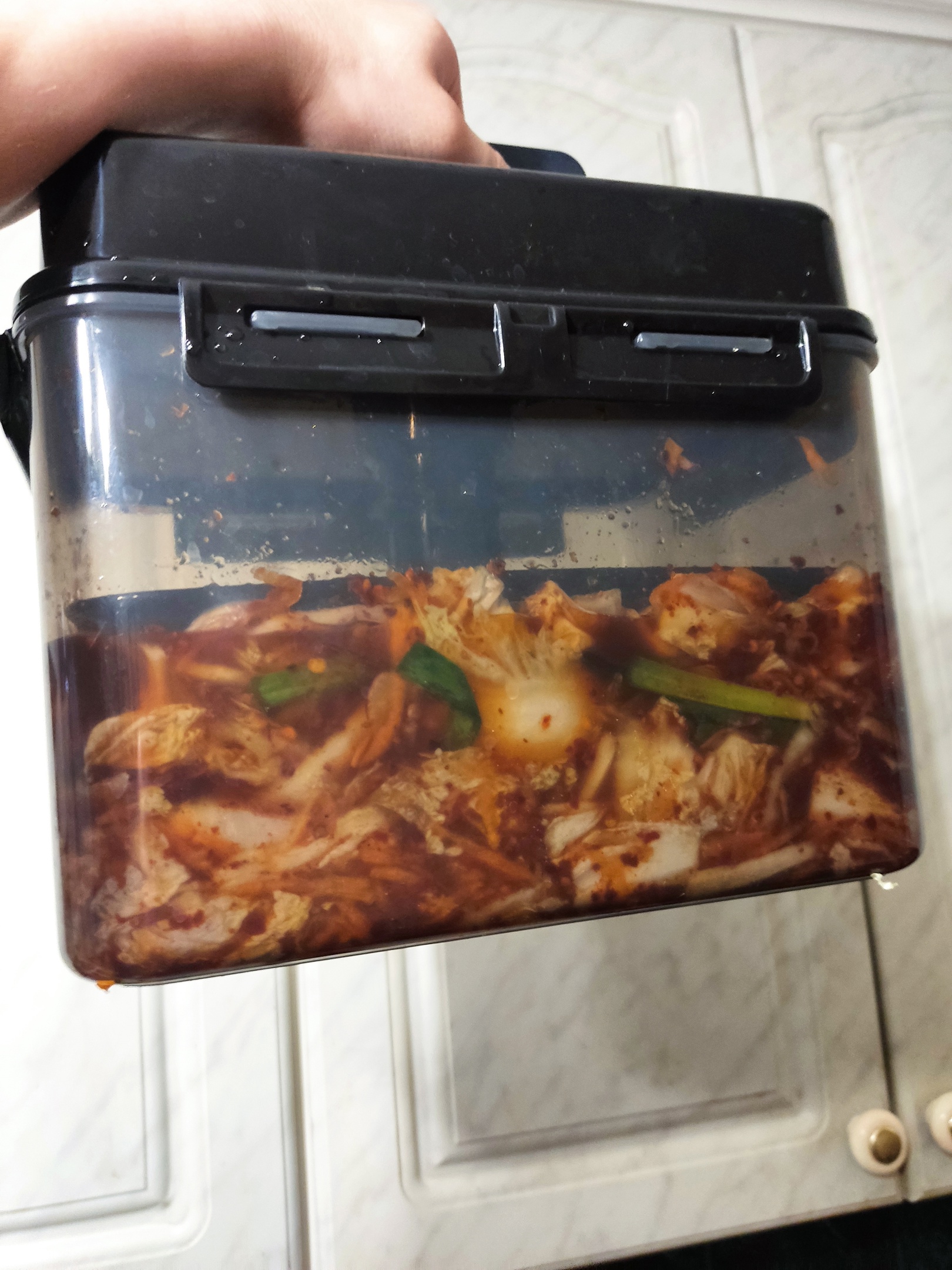 >>У меня просто контейнер >>675283 такой. это контейнер для кимчи без пресса. там просто пружина внутри, чтобы слегка сверху придавливать крышкой. и чтобы она хоть с какой-то силой давила, нужно чтобы контейнер был минимум на 2/3 заполнен. у тебя и половины нет