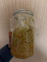 >>652229 Зашкварное это дело, не надо так. >>652238 Дальтонизьм лечи. У тебя оче мало жидкости, даже при условии наклона. Плесни водицы, чтобы покрывало капусту, а сверху стакашку поставь, могёшь воды в стаканец залить, если лёгкий. Но полностью доступ к кислороду не перекрывай. Сольцы каплюху сыпани ещё