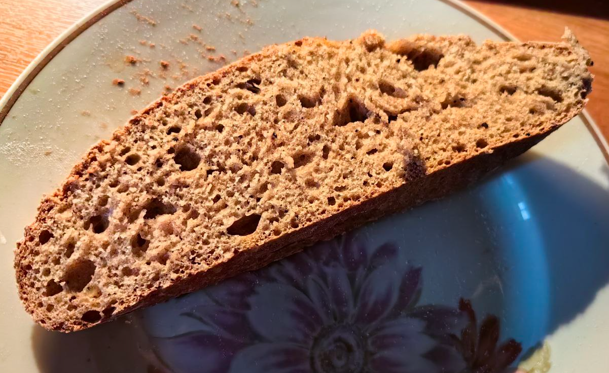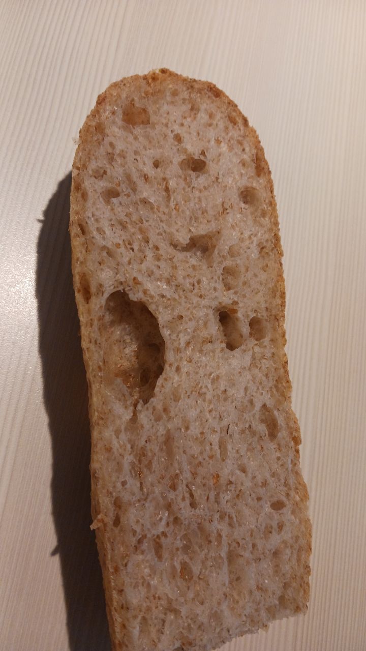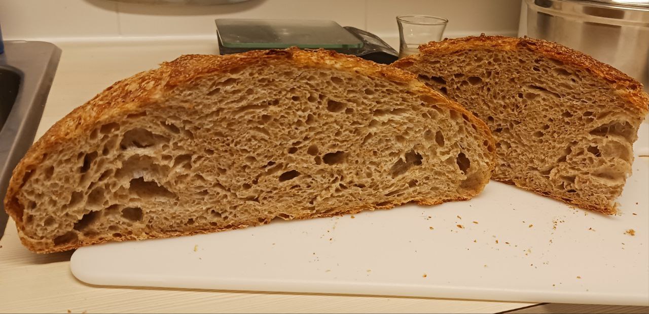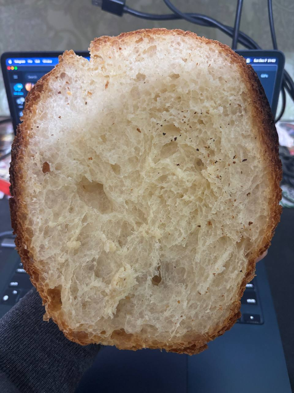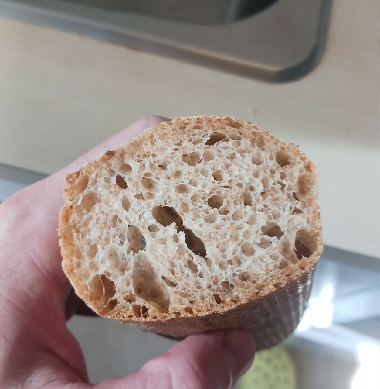 >>750122 На четвёртый день хлеб стал просто бомбический, корка смягчилась после после моего проёба "вспышки" с передержкой в духовке, мягкий, плотный, кислинка улётная и соль в норме. Я доволен.