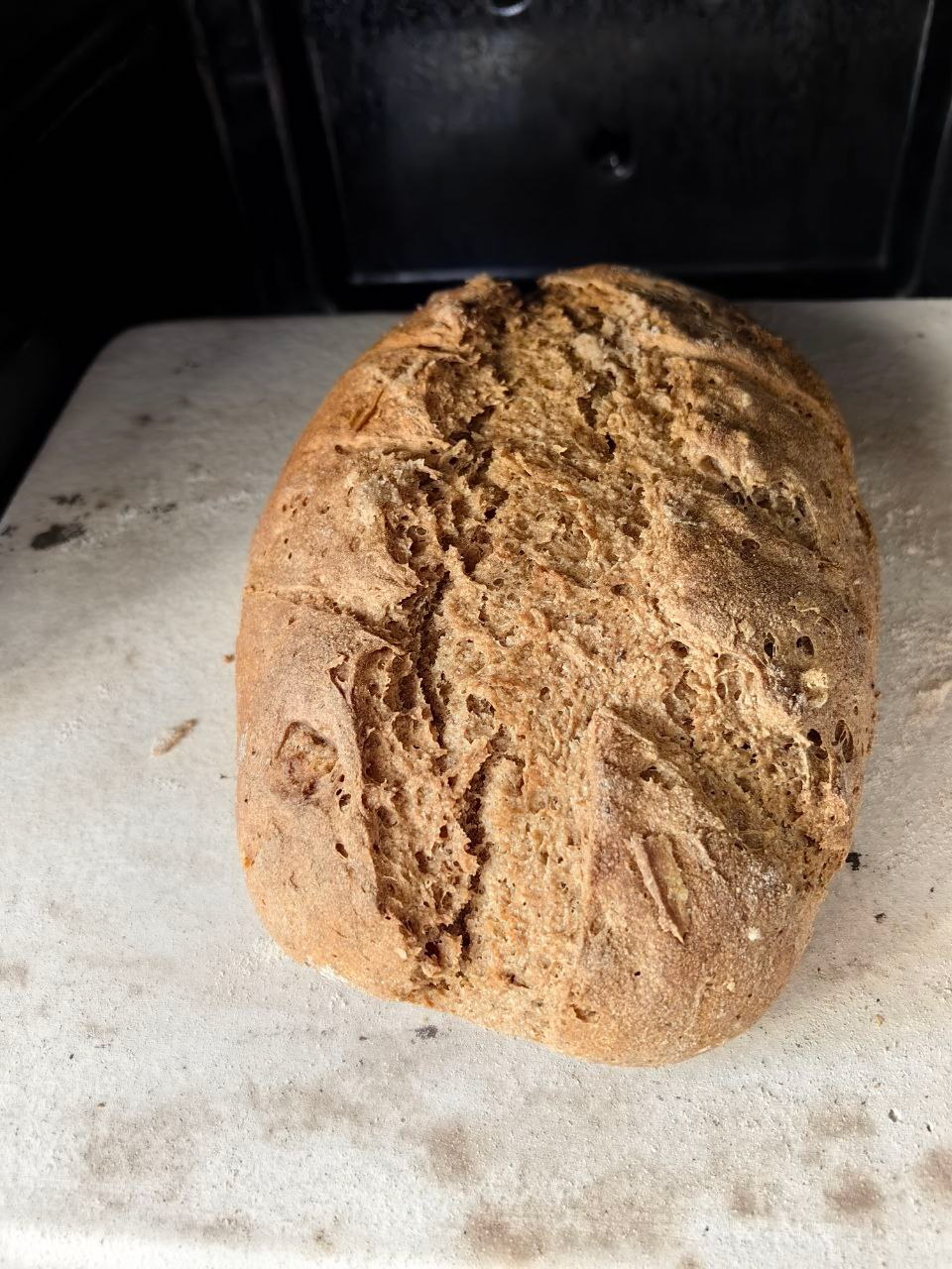 >>748670 >Я сыпал муку, видно на фото. Да надо было аккуратннее снимать скребком. Он сам бы отлип через некоторое время, просто камень долго остывает. Подовый хлеб с жестковатой коркой иногда выходит, лучше его сразу завернуть и пусть так остынет, будет мягче. Формы нет в сковородке делай, не парься.