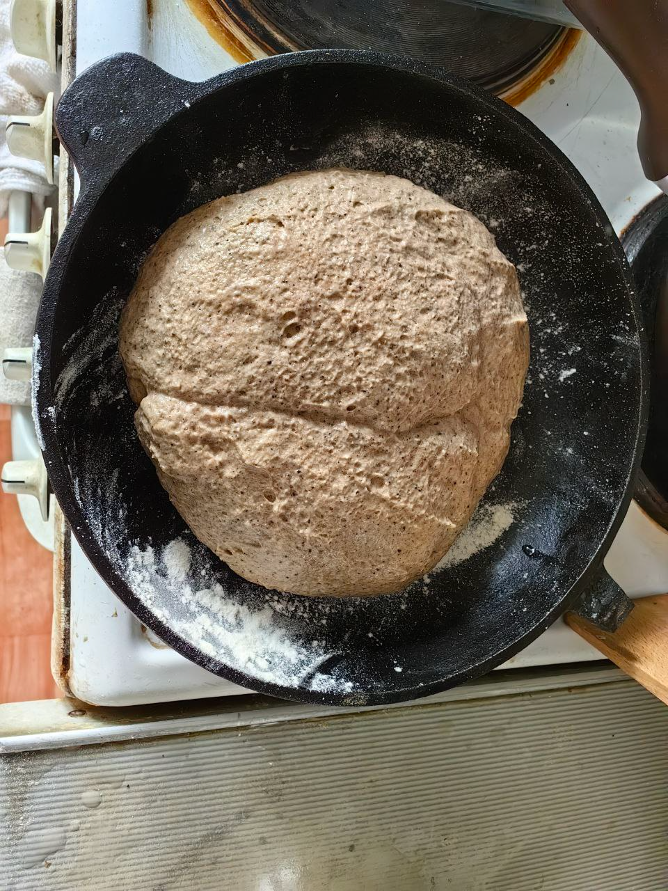 Ну что, сегодня попробую в сковородке... На фото сразу после замеса. Вопросы - надо ли чем-то накрывать? И как визуально понять что готово в печь? В рецепте пишут что увеличится в 2 раза, по времени 2-4 часа, как не проспать момент? Или от того что дольше/меньше постоит, страшного ничего не будет?