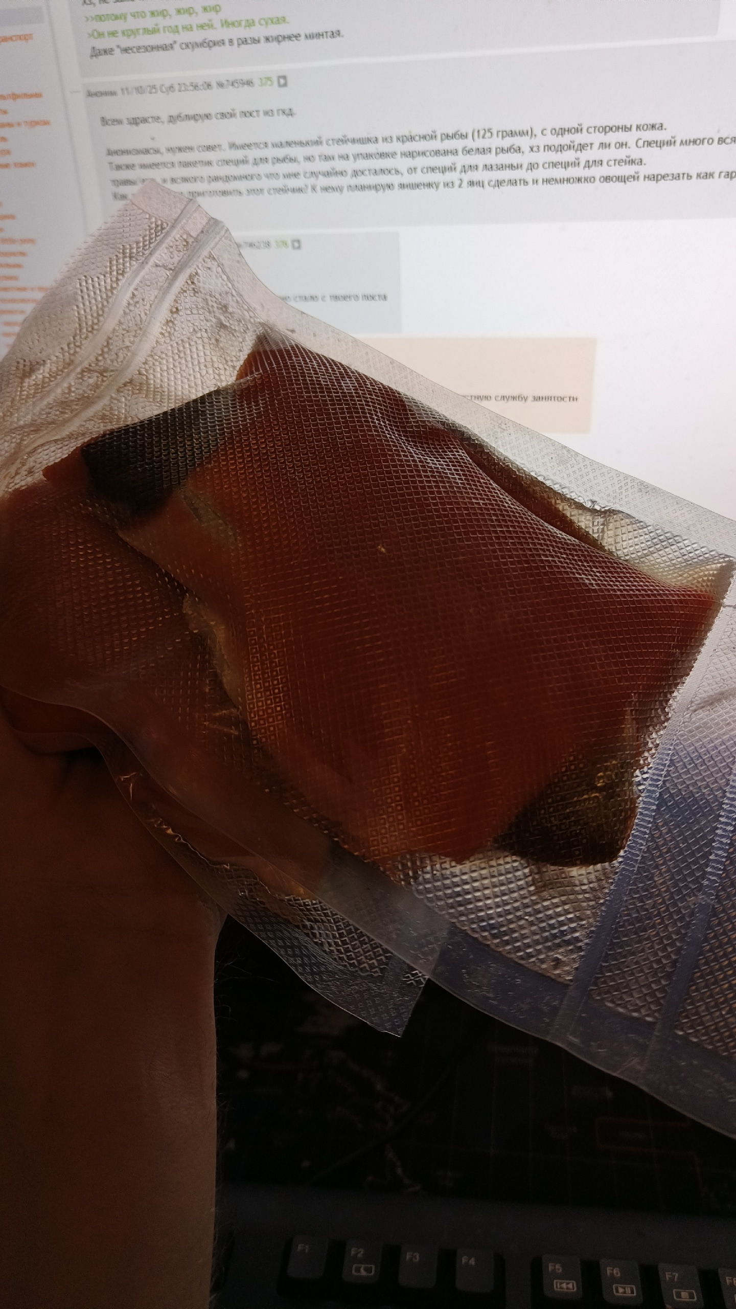 Анонизмасы, нужен совет. Имеется маленький стейчишка из красной рыбы (125 грамм), с одной стороны кожа. Также имеется пакетик специй для рыбы, но там на упаковке нарисована белая рыба, хз подойдет ли он. Специй много всяких, наборов типа итальянские травы/французские травы/етц, и всякого рандомного что мне случайно досталось, от специй для лазаньи до специй для стейка. Как лучше всего приготовить этот стейчик? К нему планирую яишенку из 2 яиц сделать и немножко овощей нарезать как гарнир