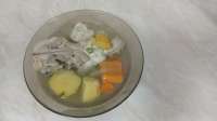 Суп из свинины и овощей с мисо. Запёк в духовке овощи и мясо со специями соевым и вустерским соусом, развел светлую мисо пасту с соевой острой пастой, добавил все в скороварку.