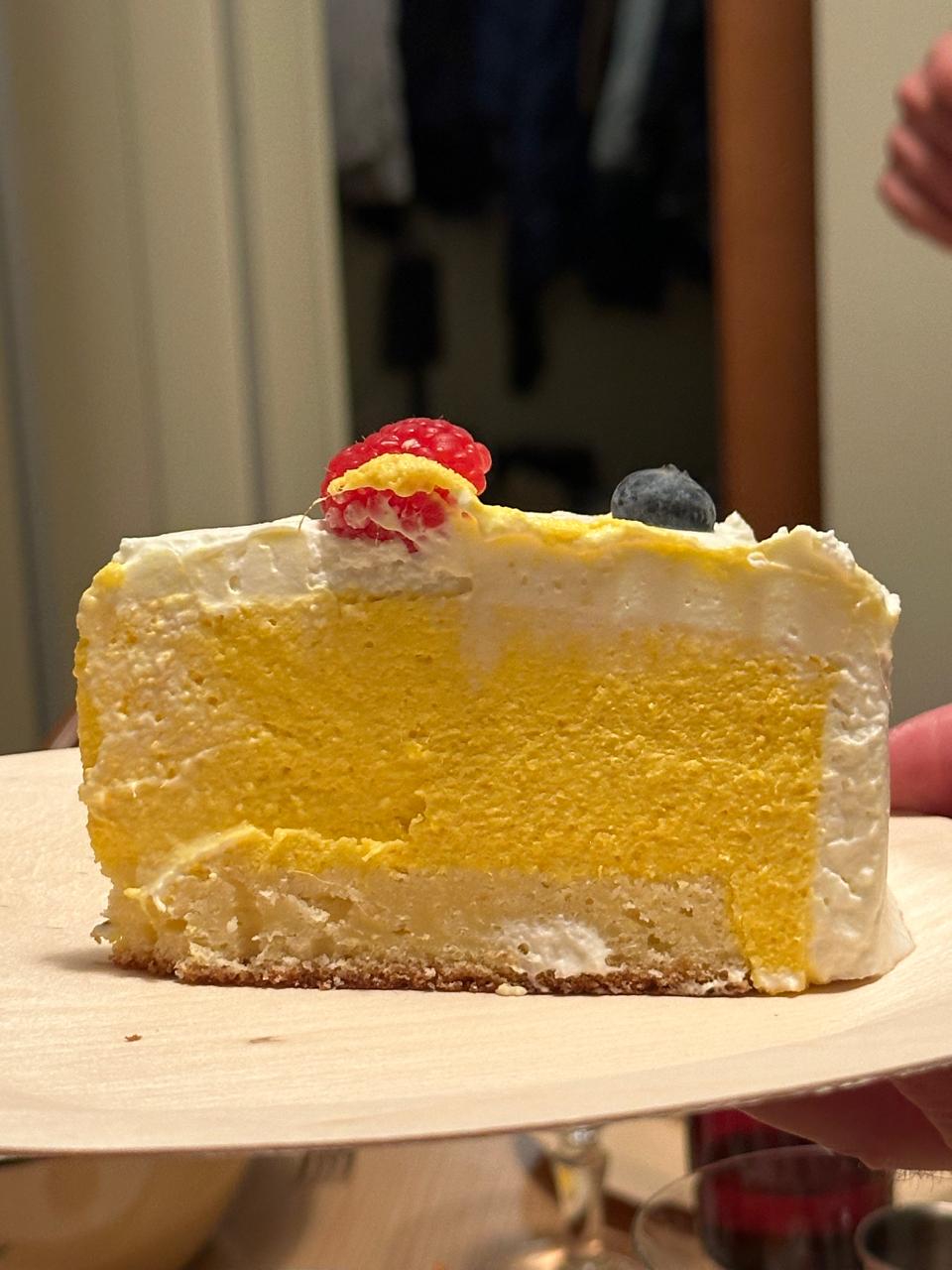 Запилил манговый муссовый торт примерно (очень примерно) как в кафешках Андерсон. Подложка на фото 24см для ориентира.