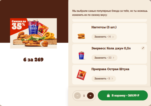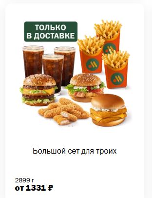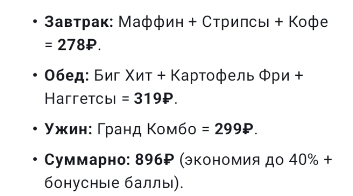 >>701357 Я ходил до января чтобы взять нагетсы по купону из треда, там выходило соотношение 6 ккал на руб. Сейчас этот купон убрали, самый выгодный купон это 4 ккал/руб и то сладкое говно с сахаром. Поэтому смысла нет брать этот оверпрайс. Раз в пару месяцев могу зайти чтобы списать спасибо