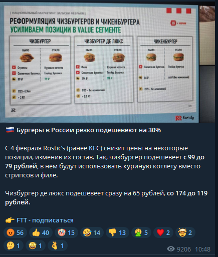 Зумеры, а вы в курсе что лет 15 назад, когда кфс еще был ростикосмо (лол) там еда продавали настоящие куски курицы (грудки) в тонкой ароматной панировке, и сочные куриные крылья? На то что продают сейчас без слез не взглянешь - какие-то худосочные кости в толстом слое панировке так еще и обжаренные на вонючем масле. Мак тоже деградировал, конечно.
