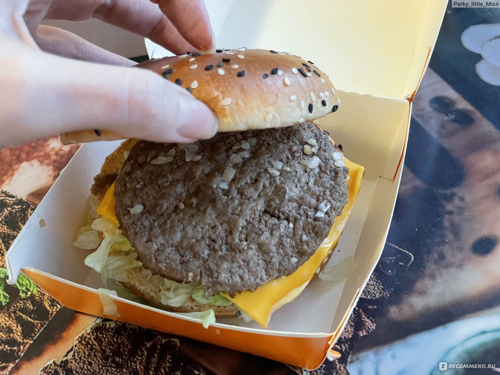 Большой же если достигнуть такой же сочности, уже сложнее держит форму особенно в последней трети бургера, если же меньше соуса чтобы поприличнее держался, то суховат уже.