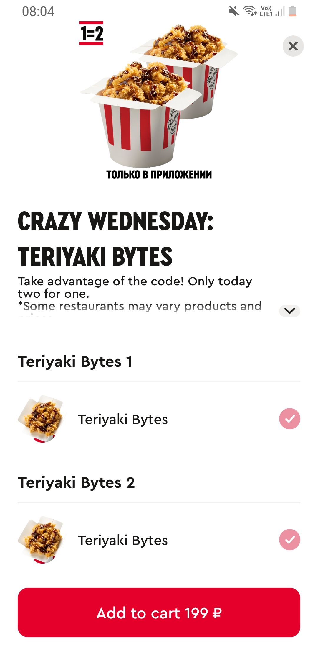 Ножки острые и сухие, ролл с аджикой и картошка - для фанатов аджики. Бургер, внезапно, ок оказался, съедобный с вкусной и сочной курочкой, где аджика не перебивает весь вкус. Байтсы микробаза, но думаю, что сахар с фастфудом - это уже перебор.