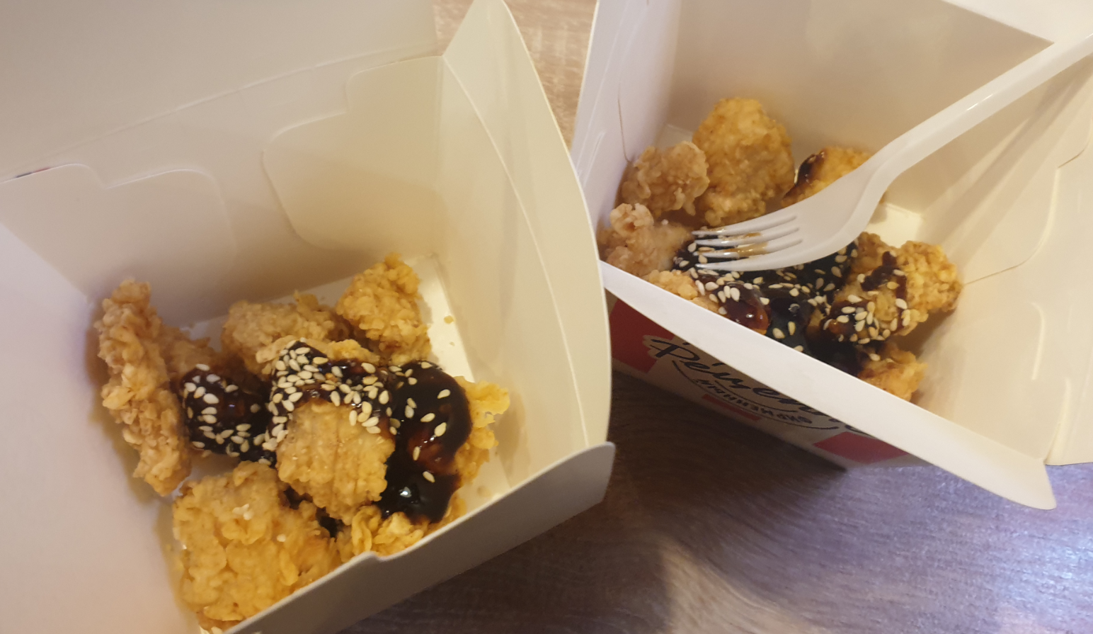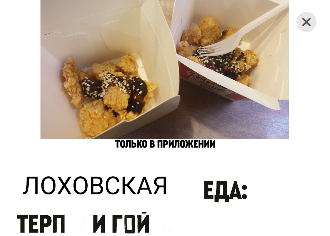 Ну это куски кожи в кляре, остатки там всякие, а что ты хотел? в чем доеб? В этом и прикол что это все полноценные позиции в меню, и они полное дерьмо. Как бы не старались тут менеджерки семенить и переводить тему на кофе. Открою секрет кофе везде дерьмо потому в ФФ оно масмаркетное Жардин, ЮлиусМайнль, Паулиг в кфс/бк/вит соответственно. Три сорта говна. Тут вопрос закрыт. А вопрос почему меню в кфс хуета даже относительно фастфуда, это открытый вопрос.