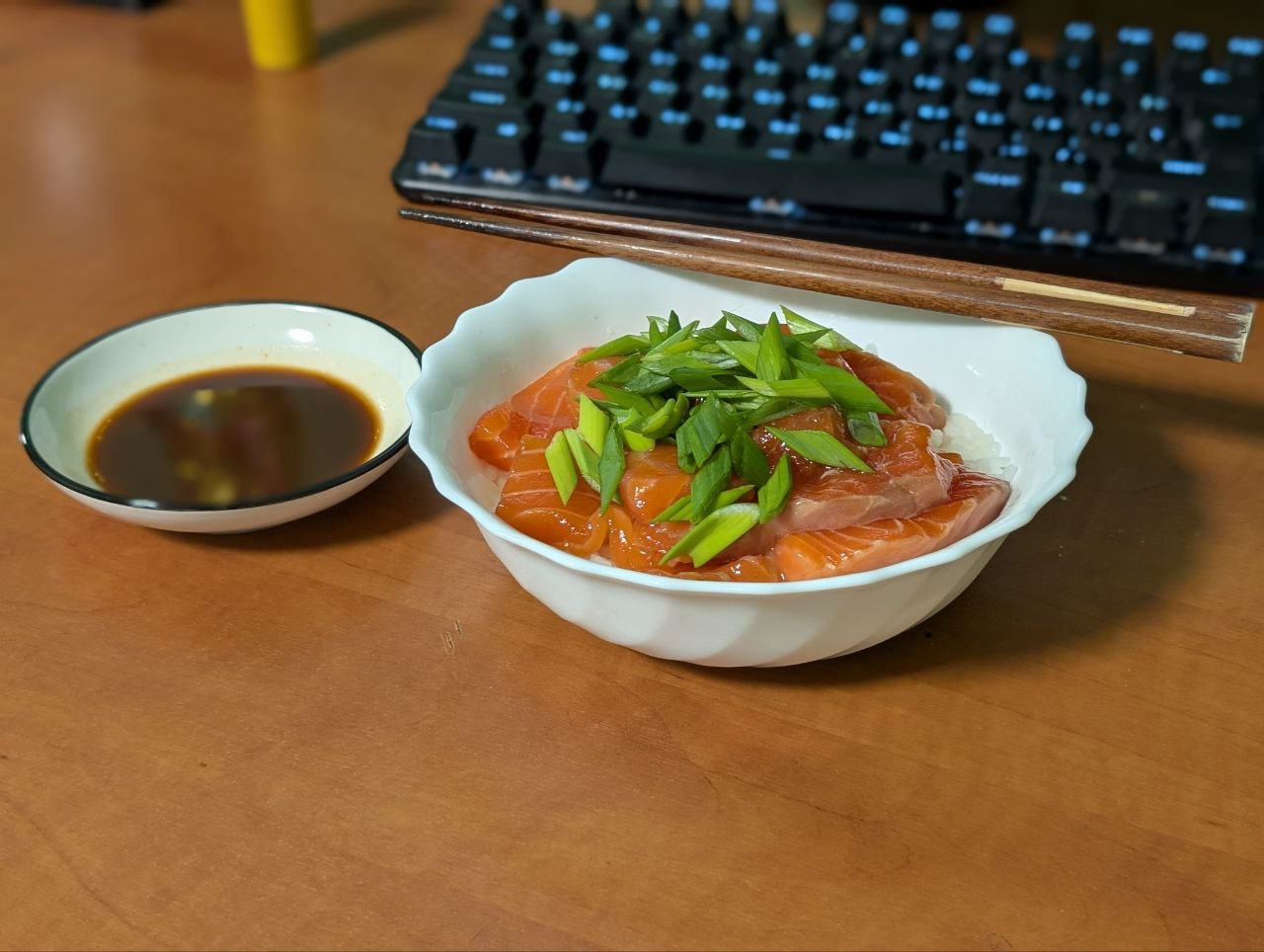 >>702810 (OP) Рыба + рис + соевый + васаби + лук зелёный Рыба слегка замаринованная с мирином, шаосинем и соевым, рис - с рисовым уксусом, чтобы удобно было есть палочками