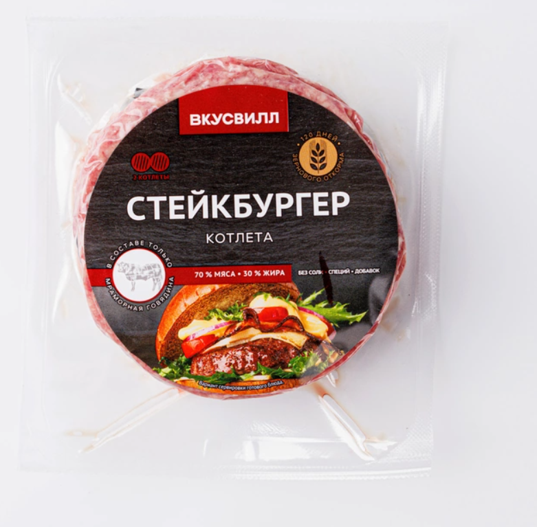 Стейк это кусок мяса, подготовленный и нарезанный из сырья: целого отруба. Котлета из вкусвила, это тот же кусок мяса, скорее всего просто обрезки что остались, которые потом просто пропустили через мясорубку и придали форму. Готовить нужно и первое и второе, время на готовку и инструменты аналогичные. Полуфабрикатом можно назвать и первое и второе. В чем разница?