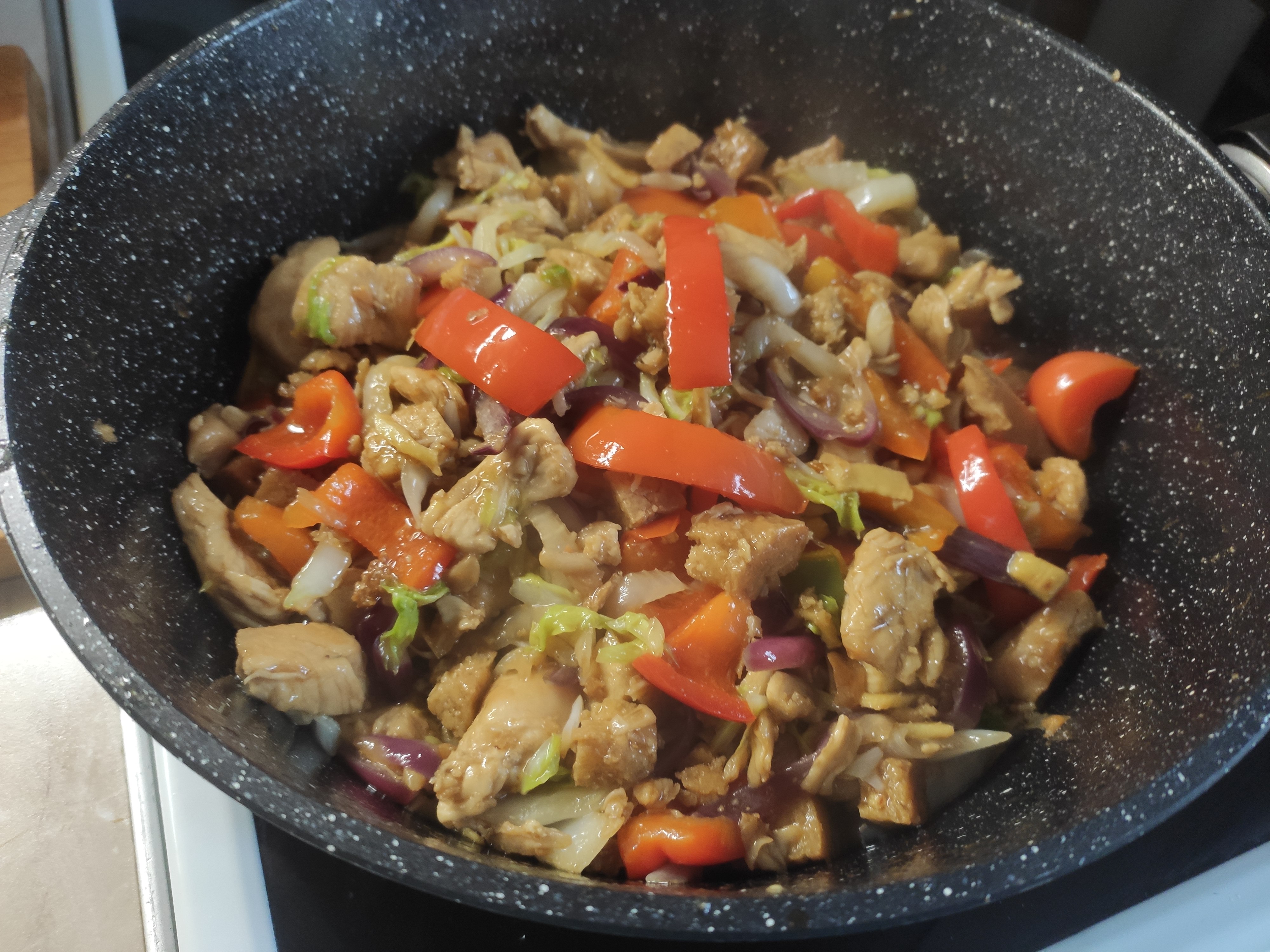 >>704250 >это нужно было обжарить в воке, а ты сварил и получил хрючево На стеклокерамике в 3,5 киловатта стирфрай полюбасу не выйдет. Обходной путь - мелкими порциями жаришь курицу, тофу, овощи, имбирь с чесноком, потом совмещаешь в сковороде с высокими бортами добавляешь все остальное минут на пять. Я понимаю о чем ты говоришь. Аромат и вкус характерный для усредненной китайской традиции, Смотайся в Ханчжоу, там свинина с уличных лотков примерно так пахнет. Ну, плюс минус, они еще всегда глутамат натрия добавляют для умами.
