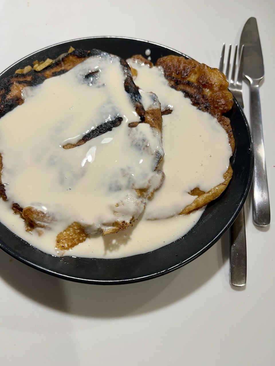 Привет, порядочным поварам, я обещал вам сегодня блинов, но престарелая патаскуха сдала меня вахтёру с потрохами, поэтому чалиться мне в бане до 3го марта. Но пацаны с воли /b/ обещали вам весточку от меня закинуть. К данному письму прилагаю фотокарточки обещанных блинчиков, как видите они всем лучше, чем ваши пидорские ПАНКЕЙКИ. А блинчики то не простые, а фаршированные, а именно творожком с кусочками манго. Так что вот! пивушка, само собой на запивушку