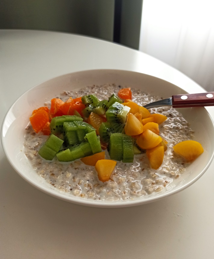 Она сухая вкуснее, хлопья жевать не спеша между делом если, или покупные сухие мюсли с фруктами, сухие гораздо вкуснее чем заливать их молоком. Залитое или сваренное как бы разбавляет вкус и уже не то.