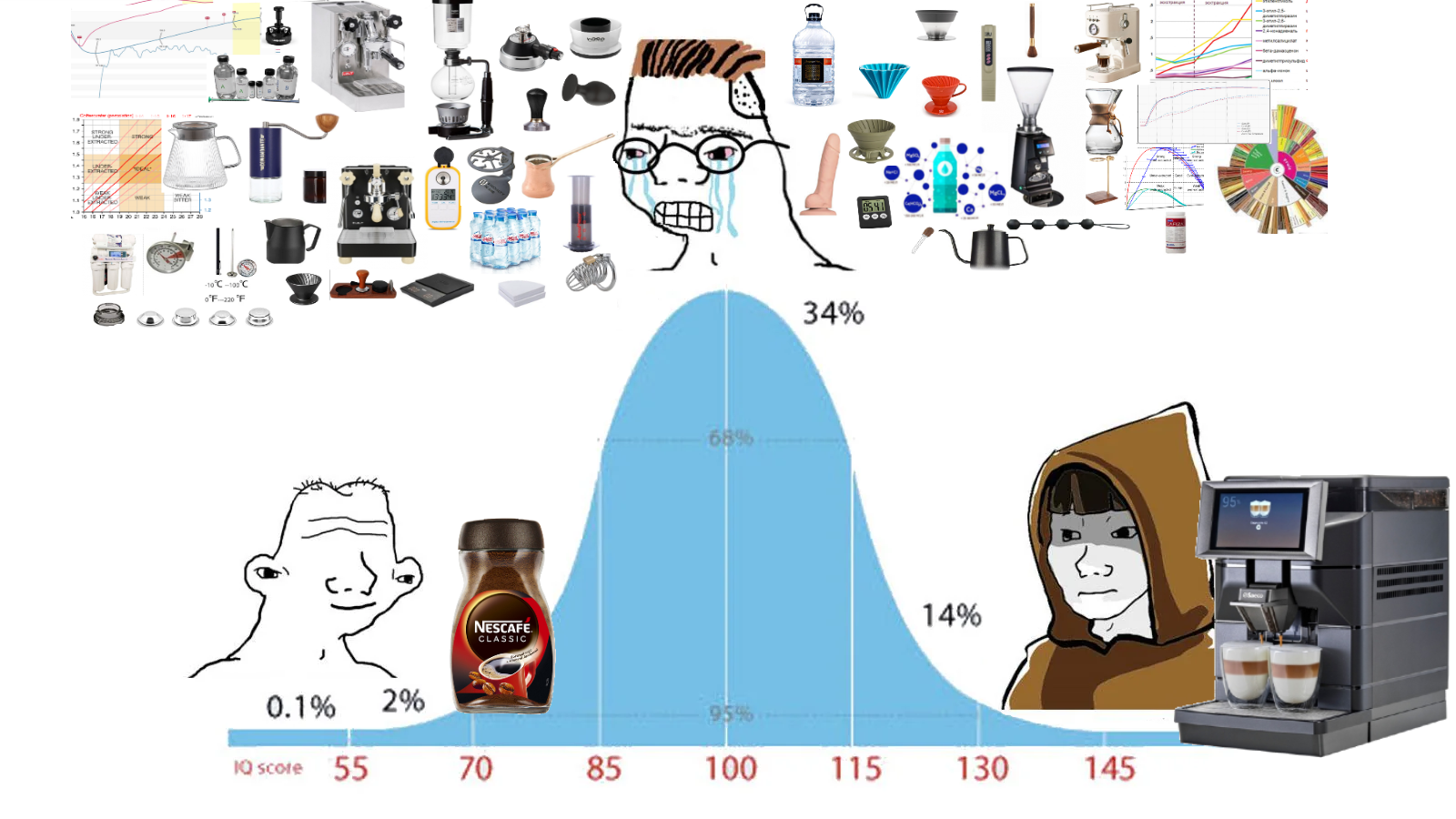 #### **7. "Идеальный покупатель светлой обжарки"** ✅ **Говорит "кислотность", когда все говорят "кислятина"** ✅ **Считает, что "массмаркет — это яд", но ест доширак** ✅ **Потратил $200 на керамический V60, но всё равно заваривает криво**