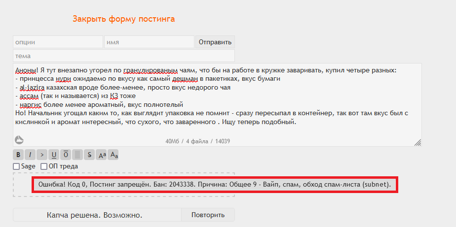 >>753281 Там нет вопроса. Пиши в дэ по поводу красного. Но если с мобильного оператора тырнета, то, скорее всего, тут спамер был с одной с тобой подсети, вряд ли разбанят.