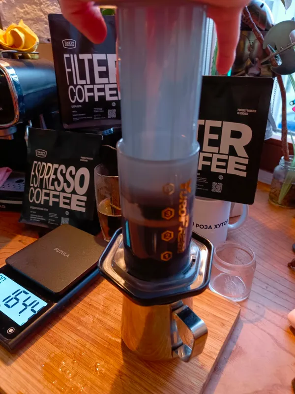 >>718568 >В чем прикол аэропресса? Вариативность, универсальность. Можно вытащить весь потенциал из любого кофе. Буквально фильтр-метод на максималках. >Та же самая иммерсивная воронка, только с жалким давлением максимум в 1.5 бар Так давление там не главное, оно нужно как раз чтобы просто выдавить кофе. Поэтому помол можно любой, даже очень мелкий. В обычной иммерсионной воронке мелкий помол просто не прольется. Поэтому можно готовить очень интересные и насыщенные чашки.
