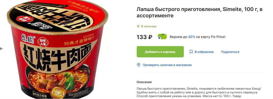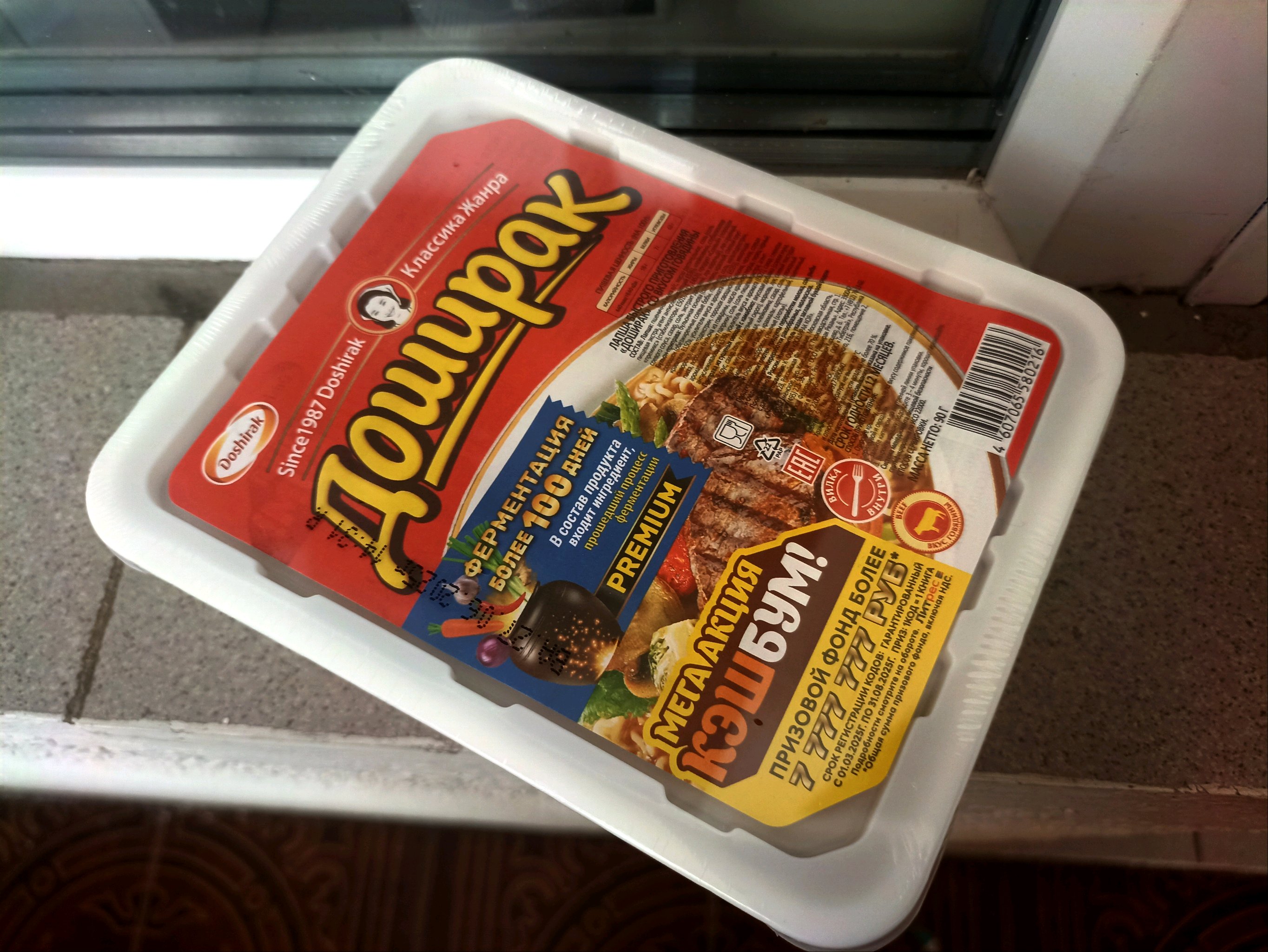 Не могу назвать «Доширак» нормальной фирмой. Смены рецептур, вкусы, которых не найти, упор на какую-то выдуманную «премиальность» при очень скромном составе. И вообще, мне кажется, местные бизнесмены друг друга загнали в дурацкую патовую ситуацию. Заходим в «Пятёрочку», видим полку, сплошь заставленную мисками куриного дошика и такую же полку с мисками говяжьего. Прямо как в советские годы одни и те же консервы выставляли на всю ширину. Что мешало пару коробок других вкусов сбоку добавить? Чудится мне, что одни давили «дайте нам минимальную цену», а другие в ответ давили «дайте нам гарантированный объём закупок», и теперь сложилась такая хуйня, в которой ничего заменить нельзя, чтобы условия не нарушить.