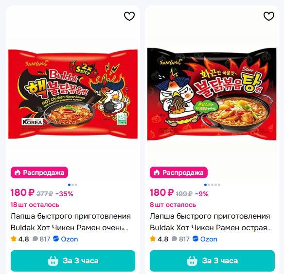 >>735611 Неа, локальная уфимская мелкосеть Лукошко. Там как обычные продукты, так и выбрасывают время от времени околопросрок со складов по оч вкусным ценам, особенно много азиатских, иранских и армянских товаров. Конкретно этому осталось почти два месяца до просрока, набрал себе запас. Тащемта, на озоне буквально такой же хуйней занимаются барыги, только они за него просят по 200 рэ/штука, пикрил из отзывов на такой же бульдак.