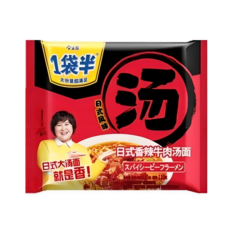 Пачка стандартная, но сзади всё переведено на английский, русский и киргизский. Оставили и бабулю, которая где-то там чем-то знаменита. Вот как хорошо вы будете выглядеть в 25, если будете питаться нашей лапшой! Почти как корейские айдолки!