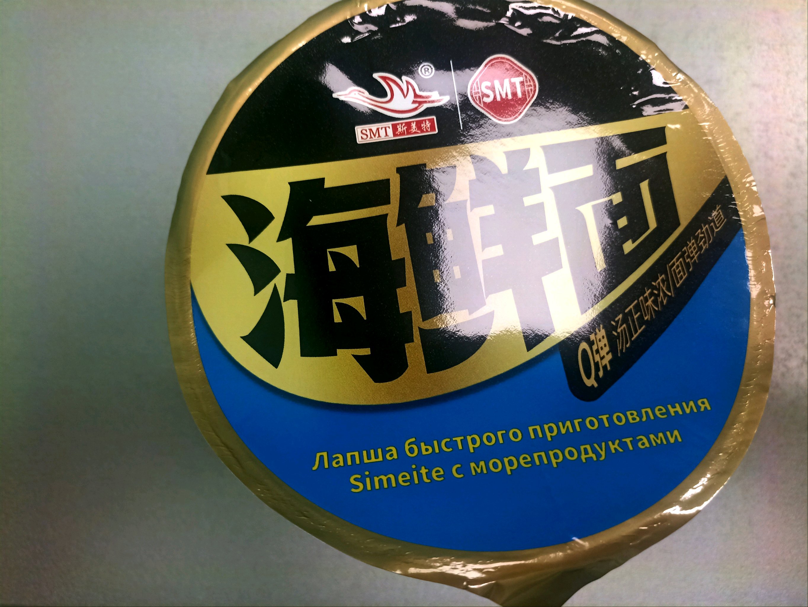 В «Семишагове» поняли, чем привлекать нищуков: бомжпакетами по сотне рублей. Лежит Nongshim парочка вкусов, Ottogi парочка вкусов, JML парочка вкусов, O’Food парочка вкусов, соседняя «Пятёрочка» может только завидовать и переставлять местами «Роллтон». Теперь ещё более дешёвая китайская лапша добавилась, «JM», производства Hanan Shangman Food Technology Co. Ltd., 77 граммов за 60 рублей.