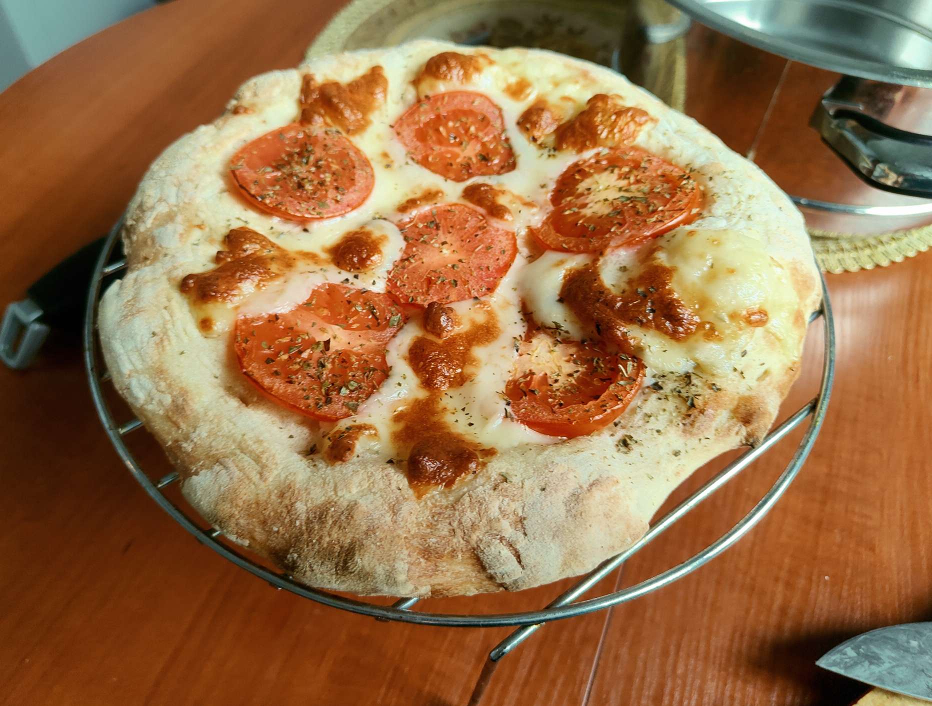 >>731563 Достал его, помял с мукой и оно постояло с полчаса. Подумал, что надо по форме всё же делать пиццу так как следующую планирую тоже. Подросло оно после получаса совсем чуть. При 60% почти не липкое, но рыхлое и равномерно его не растянуть. Вкус получился слабый, соус не купил. Нужно сахара соли поболее как минимум.