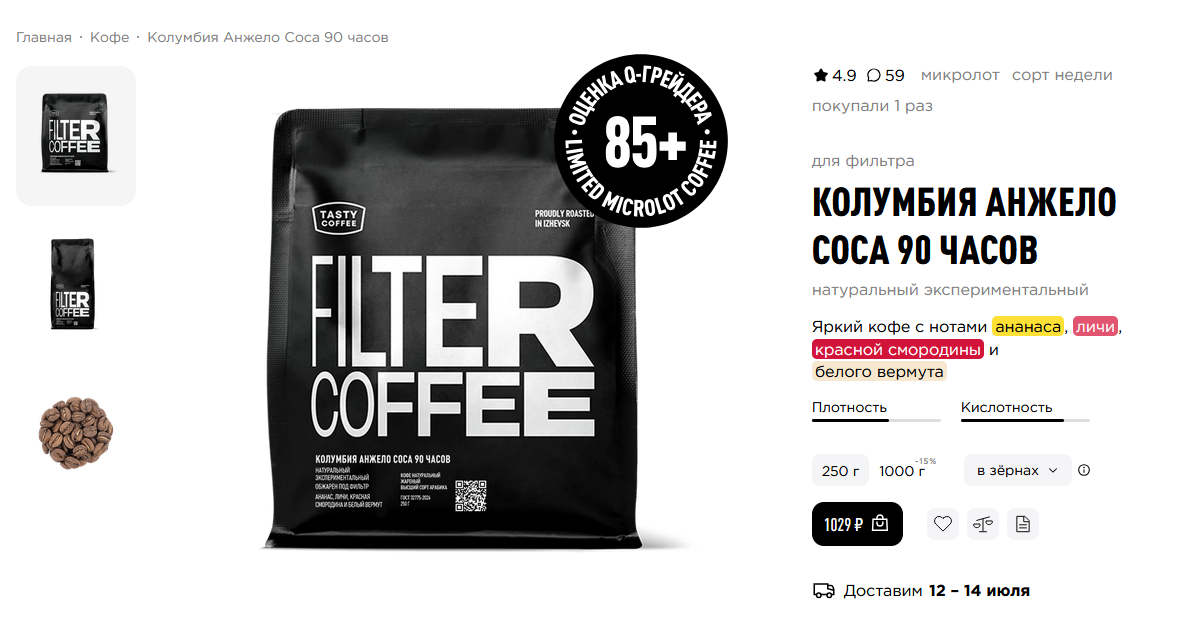 Тести фураж это очень дёшево. На озоне там у них постоянно цена за 250г в районе ~550руб. и дают бонусы, в итоге каждая третья-четвертая пачка у меня выходит вообще по ~450. Зерно конечно всегда просто помойка. С сайта у них по промикам такое же говно. Зато дёшево, хули. Вангую в голографии у них такое же дерьмо, только отобранное от квакеров. Если надо повыебываться перед гостями или на праздники я беру от местного обжарщика лютую годноту вчерашней обжарки.