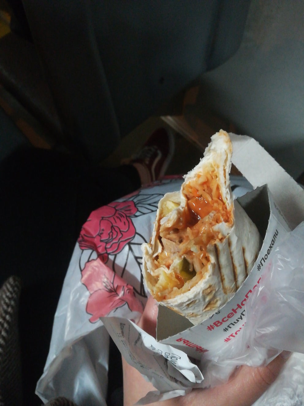 Кстати, сегодня в глобусе ел. Говнина еще похуже чем в тех точках где до этого был. Если бы брал без доп. мяса (70 рублей за 50 гр.) то была бы практически веганская. Капусты навалили, причем она еще и свежая, соуса мало и он дерьмовенький. За 320 рублей маленькая: лаваш с двух сторон загибается в четыре слоя. Причем ещё умудрились сделать ее сухой внутри, а низ протек. Пиздец какой-то.