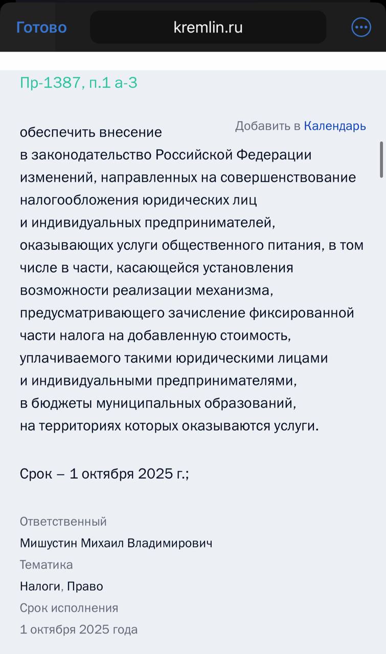 К делу черт возьми: Применительно к общепиту там говорится о планируемом переходе от НДС к оборотному налогу. Напомню на пмэфе Силуянов говорил для государства как для администрирующей стороны сложно обрадатывать НДС вычеты, минусовать что-то там, бюджет теряет из-за отмыва вычетов через прокладки всякие и однодневки. И дабы облегчить бюрократию по зачету НДС подач деклараций по нему, отличное предложение как НДС без права вычета, а именно оборотный налог 3-4% от соответственно всего оборота. Подчеркну речь именно об общепите и торговле (онлайн-торговле). Завод строительной техники например нормально будет вычитать расход НДС как и сейчас. И тут мы подходим к скриншоту: именно этот оборотный налог и пойдет по новому маршруту по месту деятельности "системы ПБО" в нашем случае, а не к федералам напрямую и сразу. 1/10 октября узнаем точный новый процент ебаного оборотного налога и соответственно новые цены.