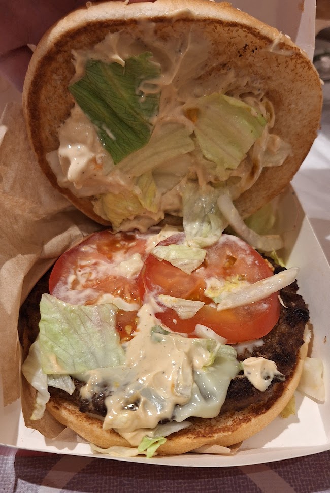 Слуште, бургеры беру раз в год, заказал с вкусно и точки, но бургер у меня дома еще полтора часа провалялся, плюс везли минут 20-30, потом разогрел, пока он все это время лежал он мог размякнуть? А то он был прям весь размякший, помнится в маке лет 5 назад брал, такого не было. В целом обычный бургер из забегаловки учитывая размякшесть, котлета из говядины рубленная только неплохая была.
