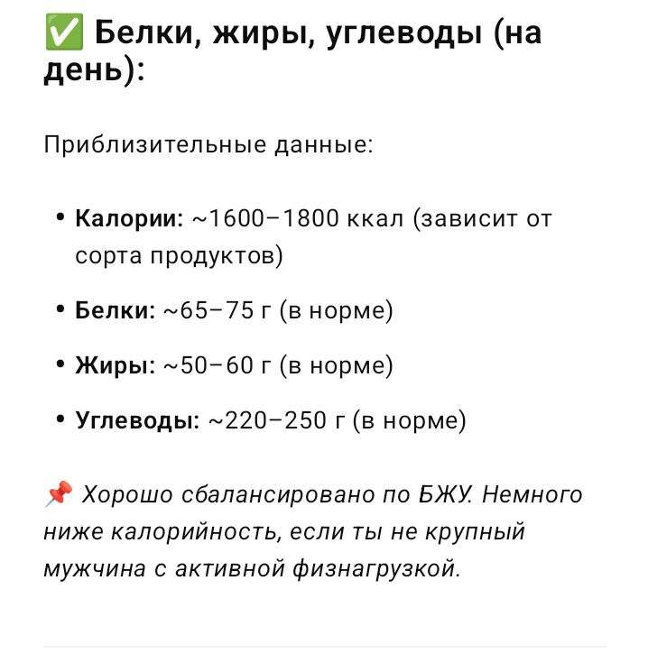 Итак, непосредственно сам рацион, можно делить на 2 или на 3 приема пищи, я делаю на 2.
