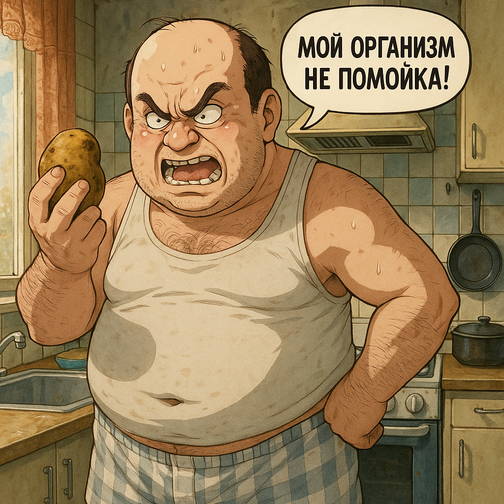 Много лет назад здесь, мной в том числе, был создан т.н. "Мужикач-тред", где иронично высмеивалось то, как питались "бати", позже подключились сами бати и лулзное хрючево стало все чаще перемежаться с нормальными блюдами, но в целом сохранялся такой юмористический рефрен под водочку с Дукакисом. Итак, это не нищеброд-тред, тут у людей есть деньги. Но часто уже нет времени, так как приходится быть заебаным на работе, а мамка умерла/жена ушла (нужное подчеркнуть), и третий инсульт уже не позволяет питаться полуфабрикатами типа пельмендосов, запивая их холодненькой. Но это и не диет-тред, так как тут ебанутых нет. Просто нормальная ненапряжная хавка из моего и может быть чьего-то еще рациона, типа не дофига вредная, но и не особо полезная, на которой можно протянуть хотя бы до 65 годиков.