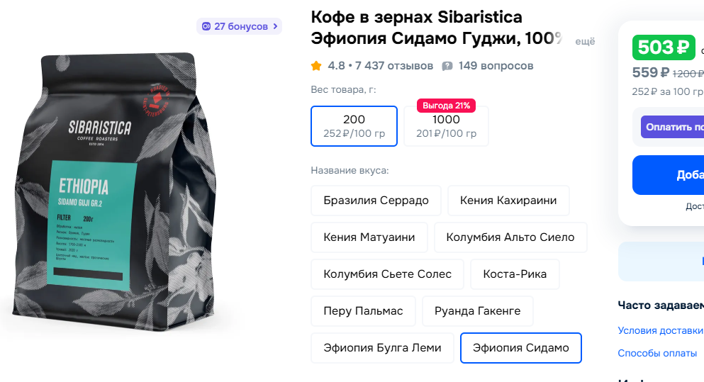 >>742170 Если ты из ДС-2, то они присылают на следующий день, я поэтому я беру у них часто вместо тейсти. Пару раз попадалась месячная обжарка (по вкусу все равно норм было). Присылают без упаковки. Конкретно этот кофе на пике, я пробовал. За 500 рублей он хороший, но конечно не такой как кофе за 1к и больше, хотя иногда и за такую цену бывает хуита даже от сварщицы.