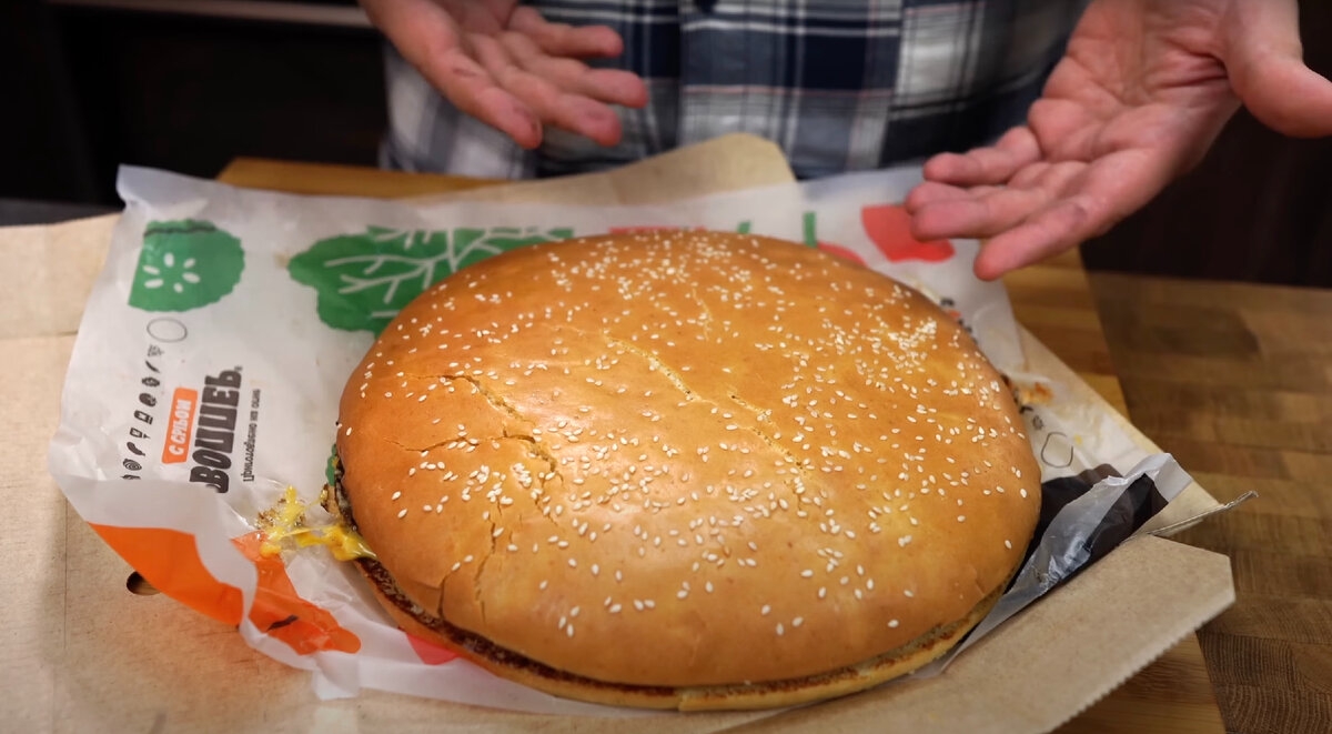 Xотелось КУШОТЬ и зашёл в ближайший бургер кинг. В общем долго тупил что заказать и выбрал банальнейший двойной гамбургер (или это чизбургер хз). И он был просто микроскопического размера. Буквально детский, лол. В целом было суховато и на любителя. Но думаю с пивком или колой зашло бы получше. Когда пару лет назад пробовал вкус был точно такой же. Но вот сам размер.. Сейчас везде такие микро бургеры? Вот кстати даже замороженный чизбургер от мираторга намного вкуснее и больше по размеру. Ах да. Там внутри помещения был буквально бомжатник. Мусорки переполнены и прямо на полу возле них горы мусора. Пиздец. Про цены я вообще молчу. И на это вы надрачиваете.