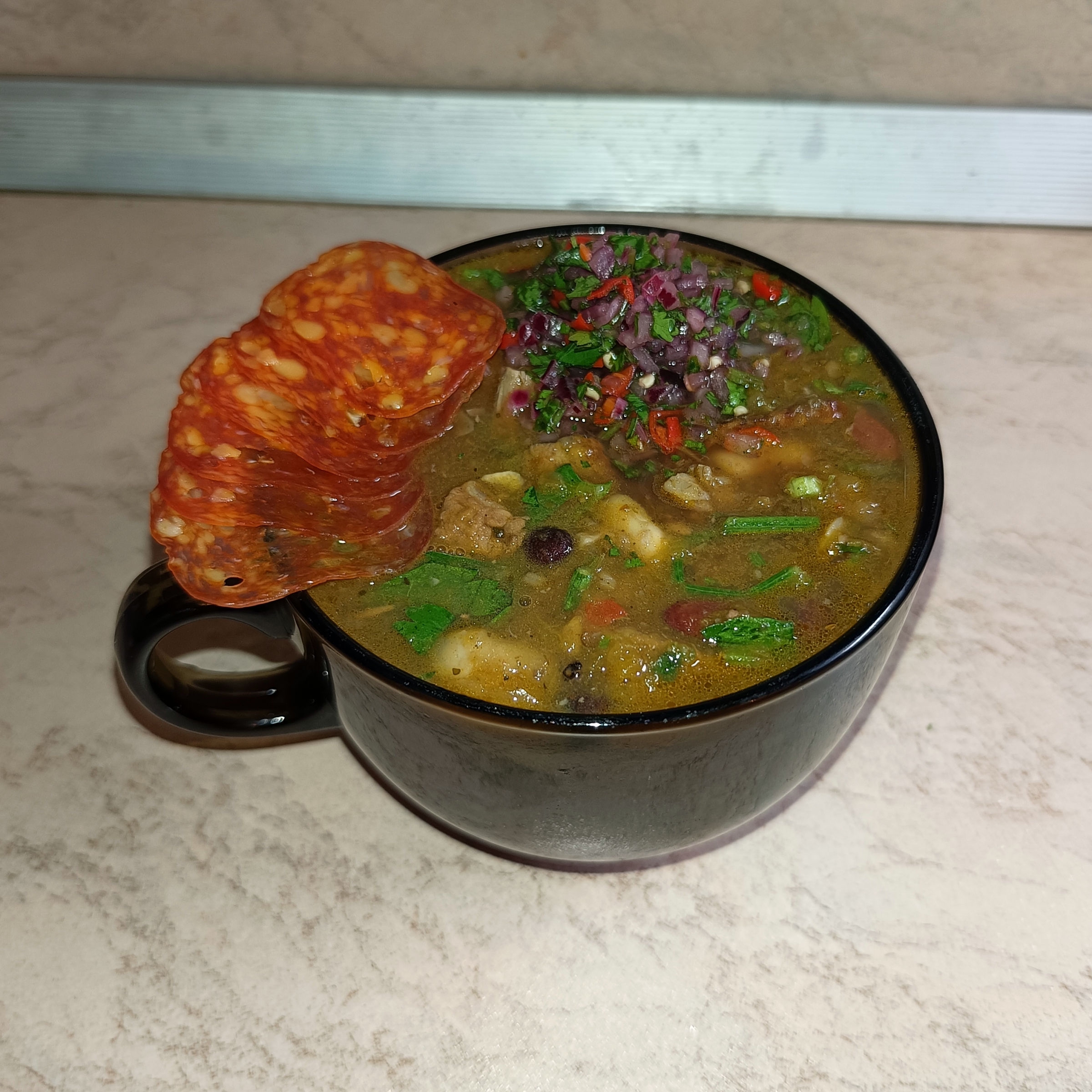 Через пару часов пердолинга получаем 4 с чем-то литра отменного нажористого хрючева, которое трескаем, урча самодельной сальсой.