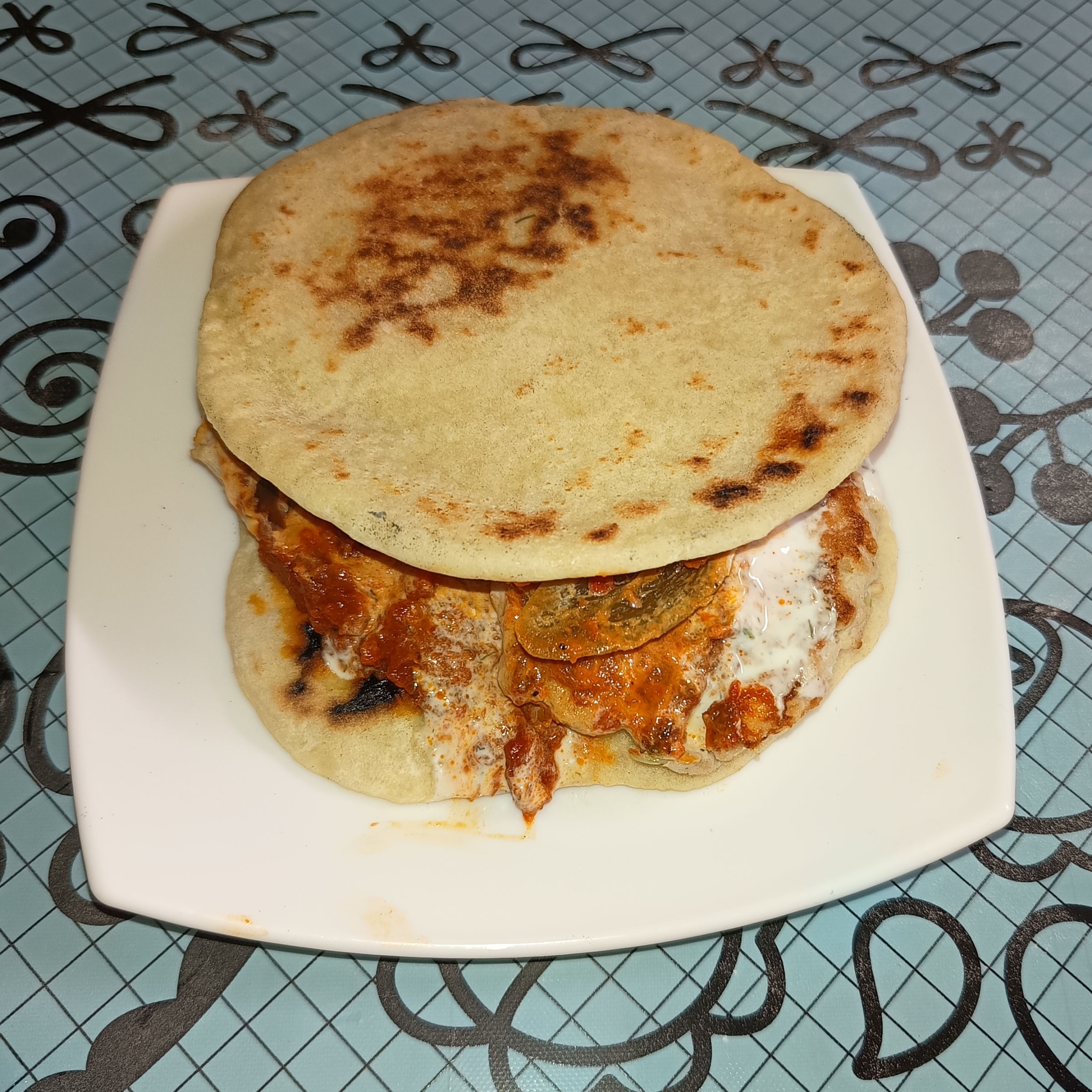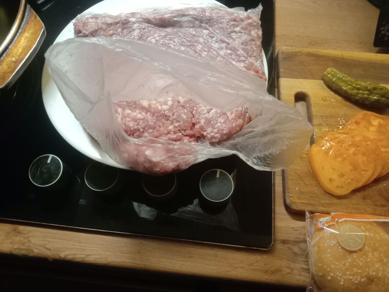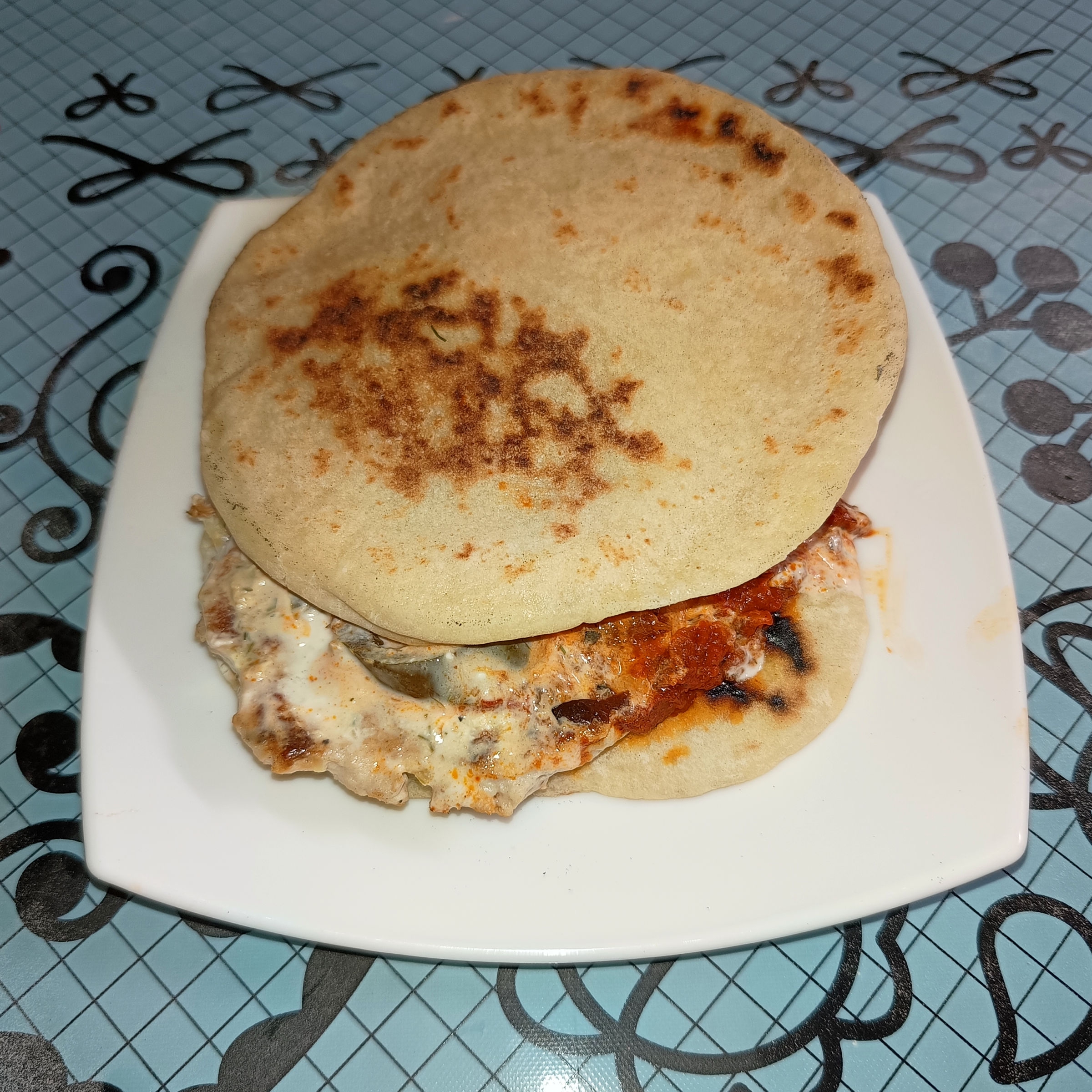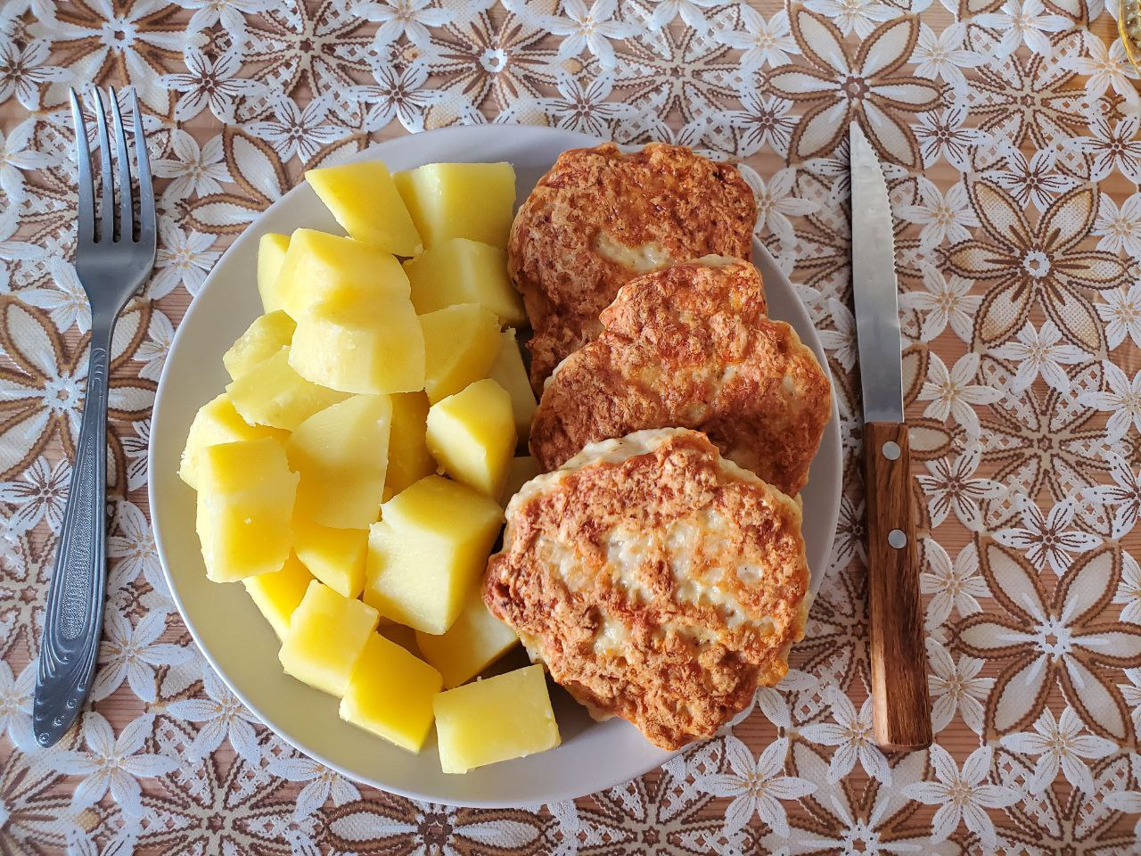 Забыл сфотать сразу, когда собирал. Пришлось с боем отбирать последнюю и дизассемблировать для фотосессии. Питы самолепные, плескавицеподобные коклетки из тертой грудки индюхи.