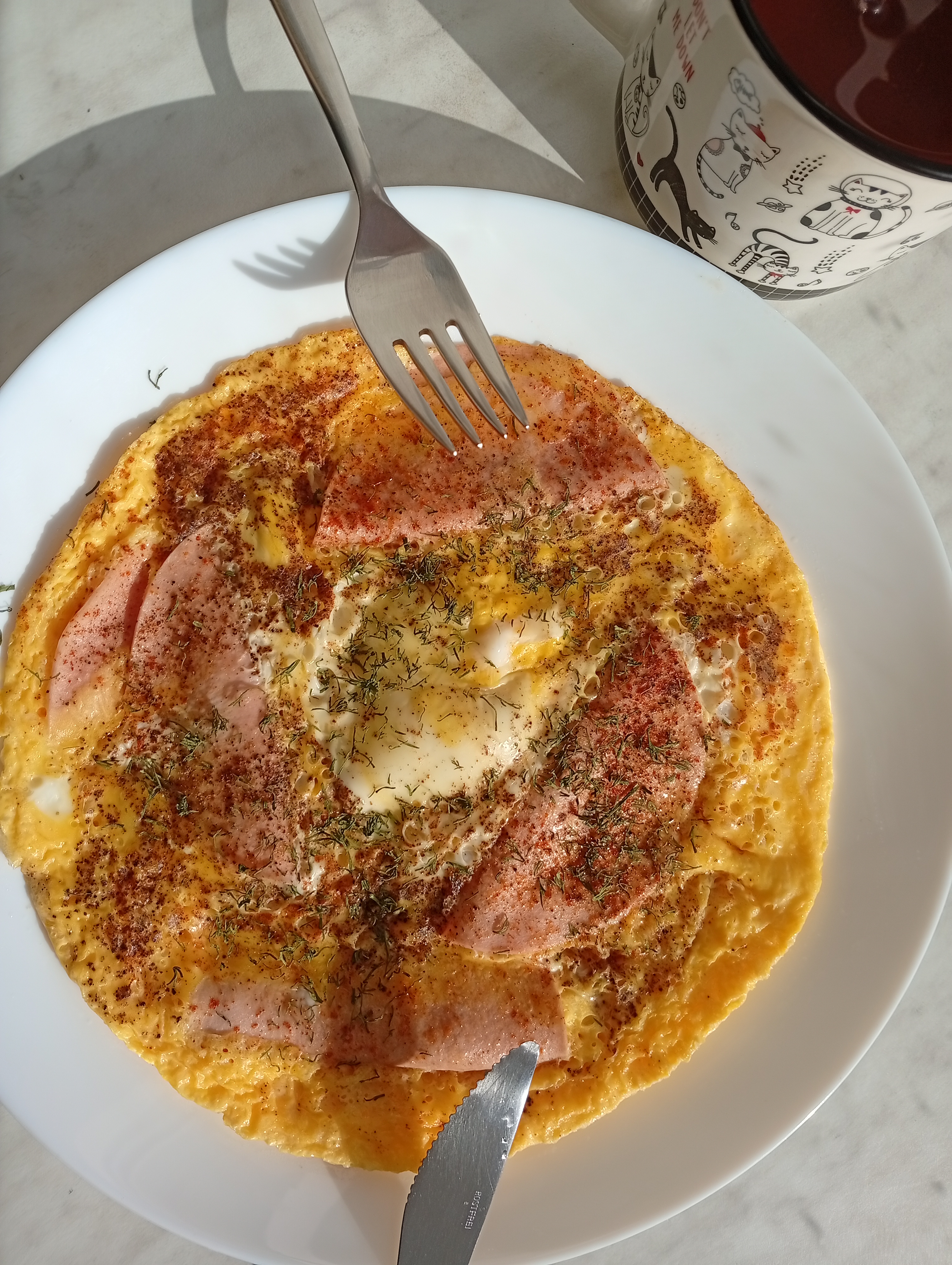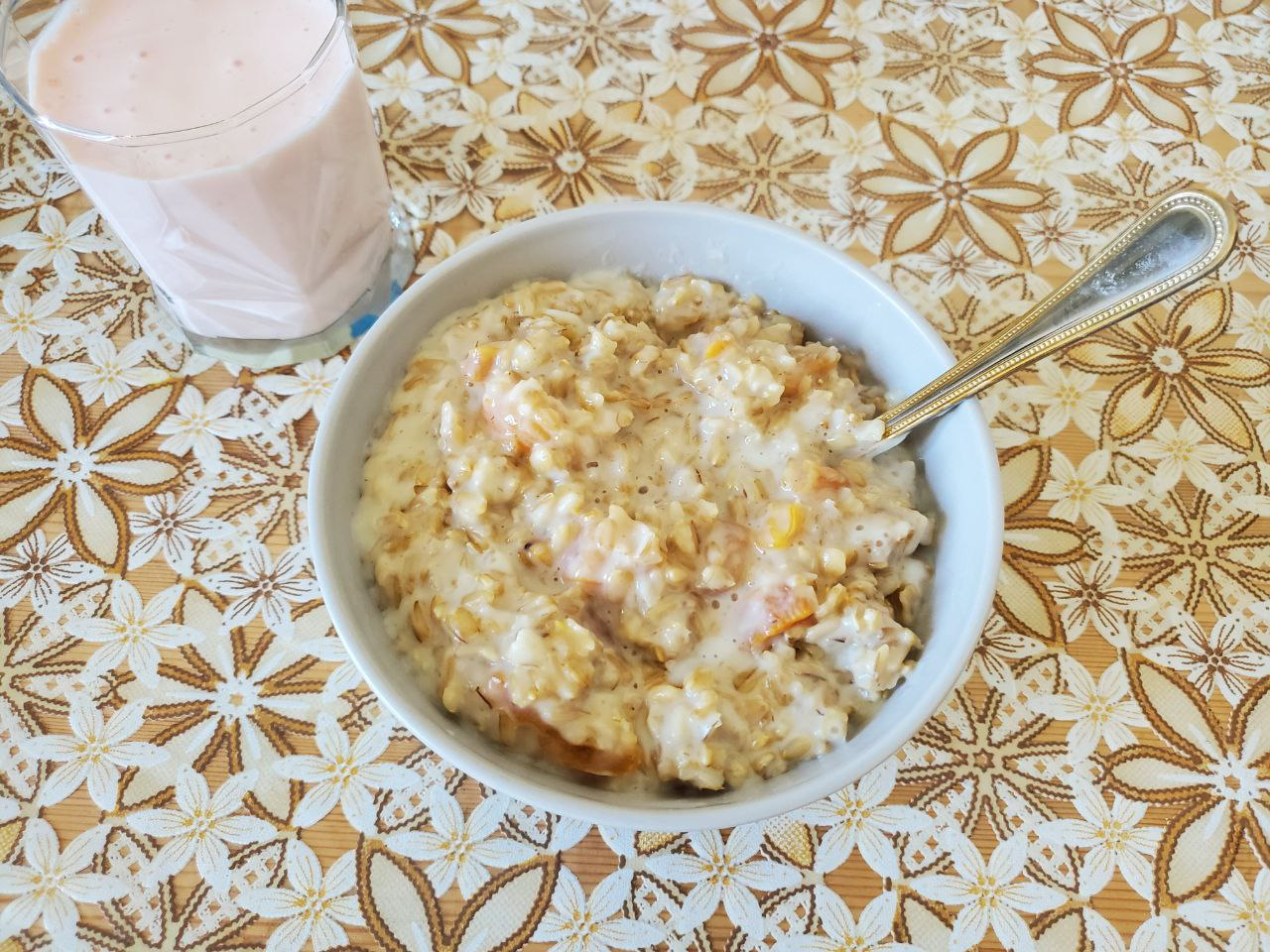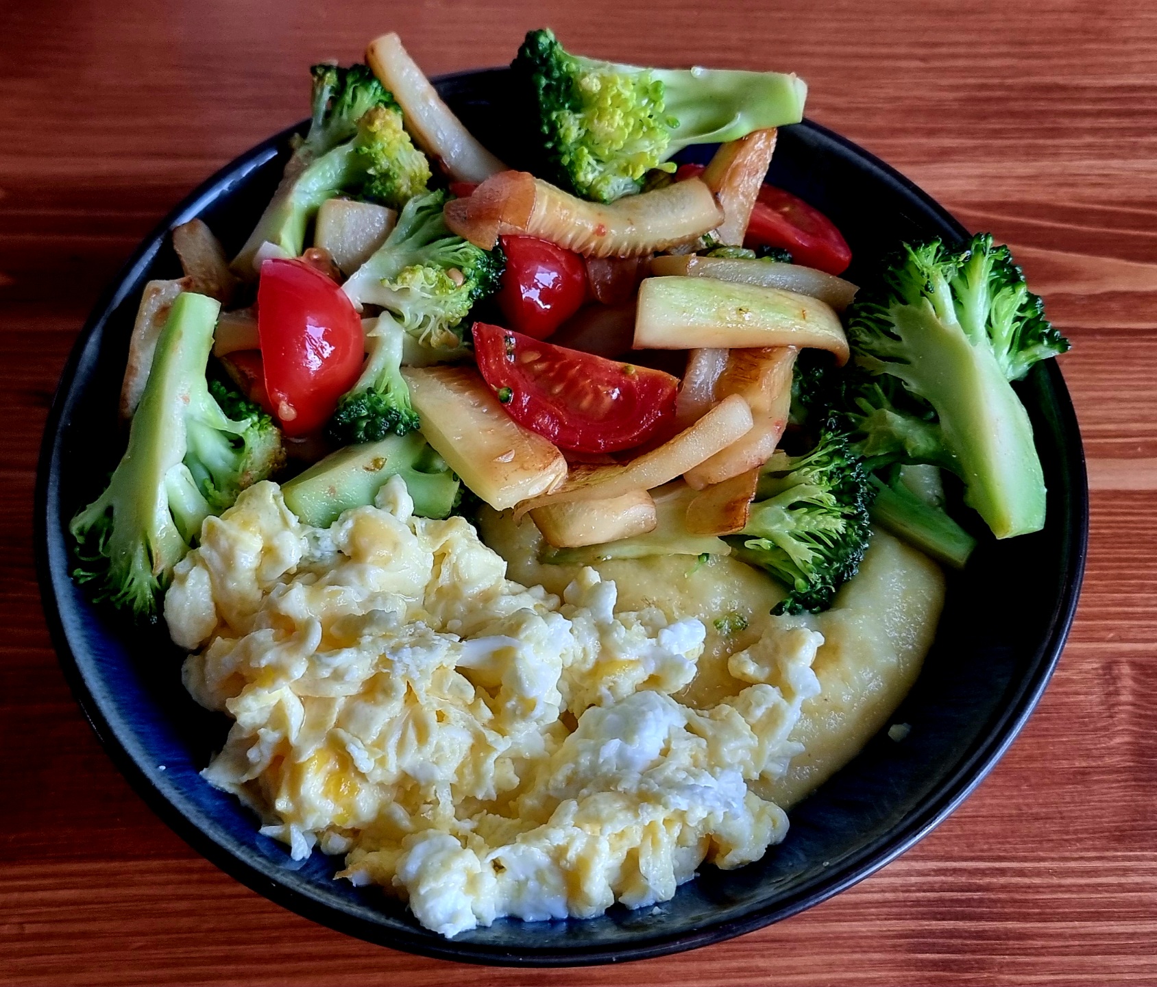 Завтрак: кукурузная каша, овощи и яйцо. Вкусно, сытно и полезно.