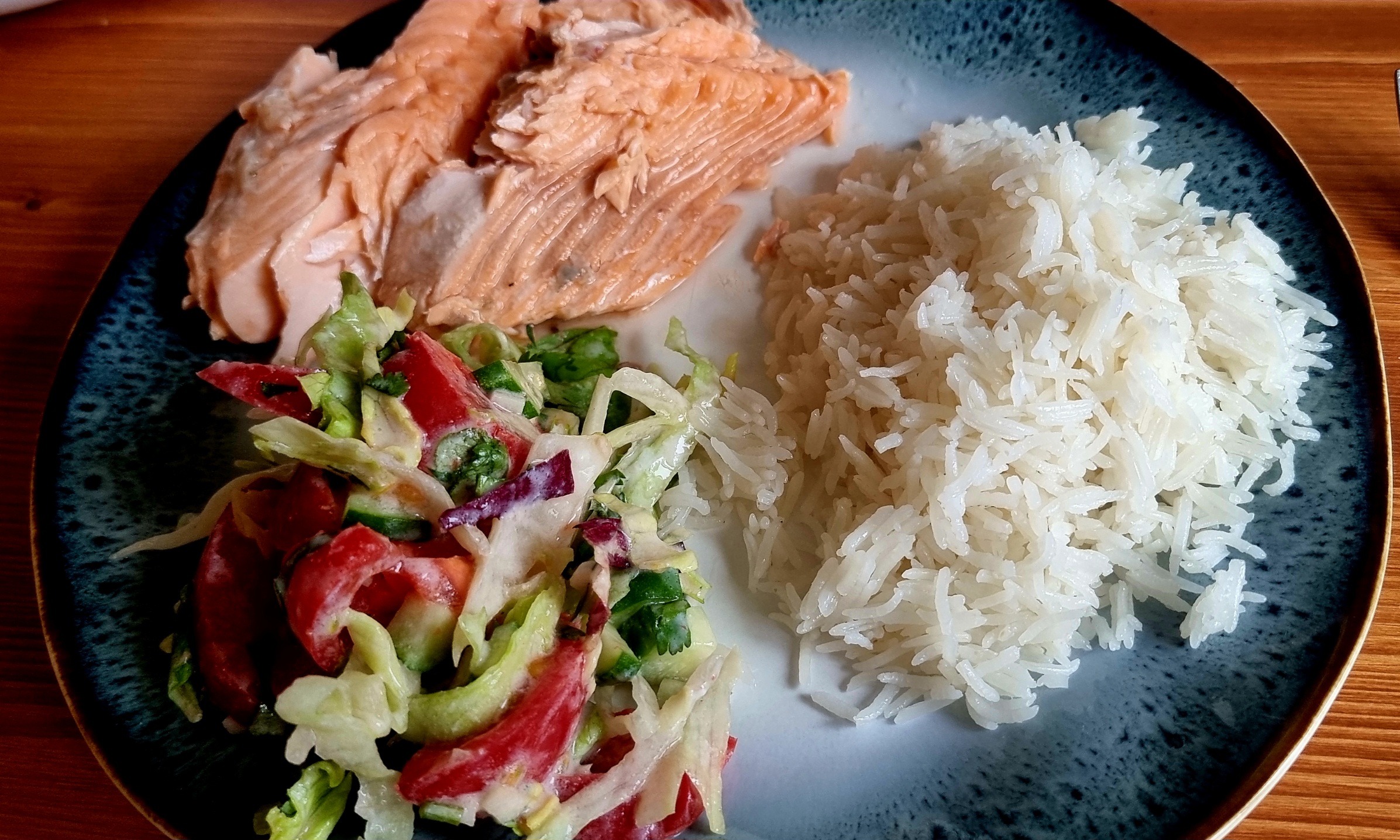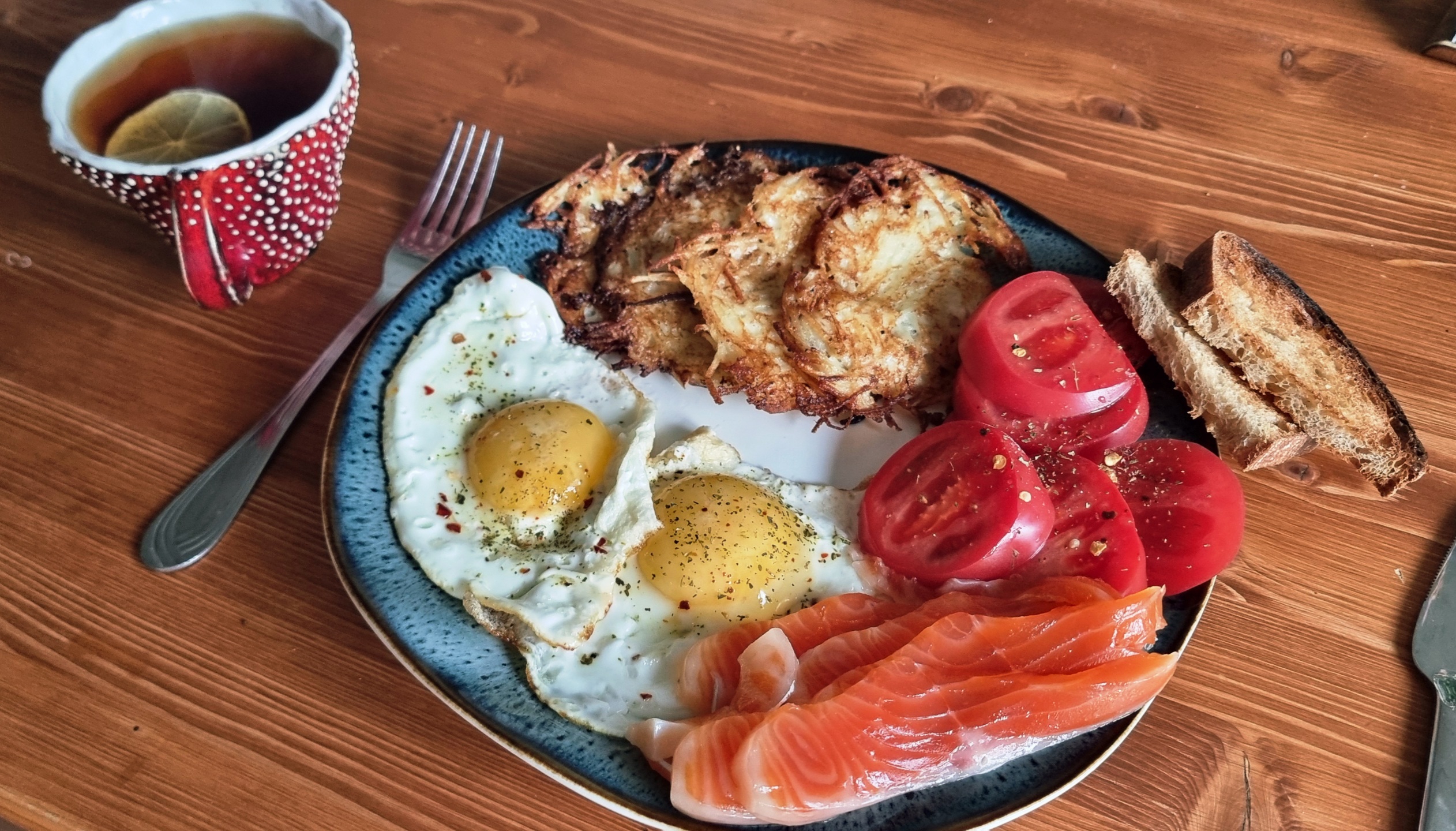 Давно не жарил сёмгу, а тут подогнали пару стейков по сходной цене. Что могу сказать, - отвык, слишком насыщенная и жирная для меня оказалась. Только лимон этот факт нивелировал.