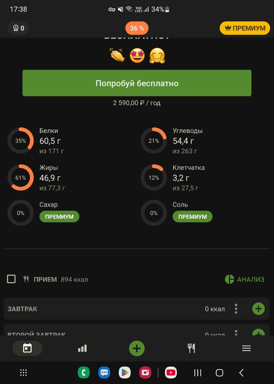 >>746766 >Ябать игрушка для дебилов... Калькулятор за 200 рублей в месяц. Жирные зумеры совсем одебилели. Это про версия, там еще маня-витамины/минералы считаются. Для примерного подсчета кбжу и бесплатная версия сгодится.