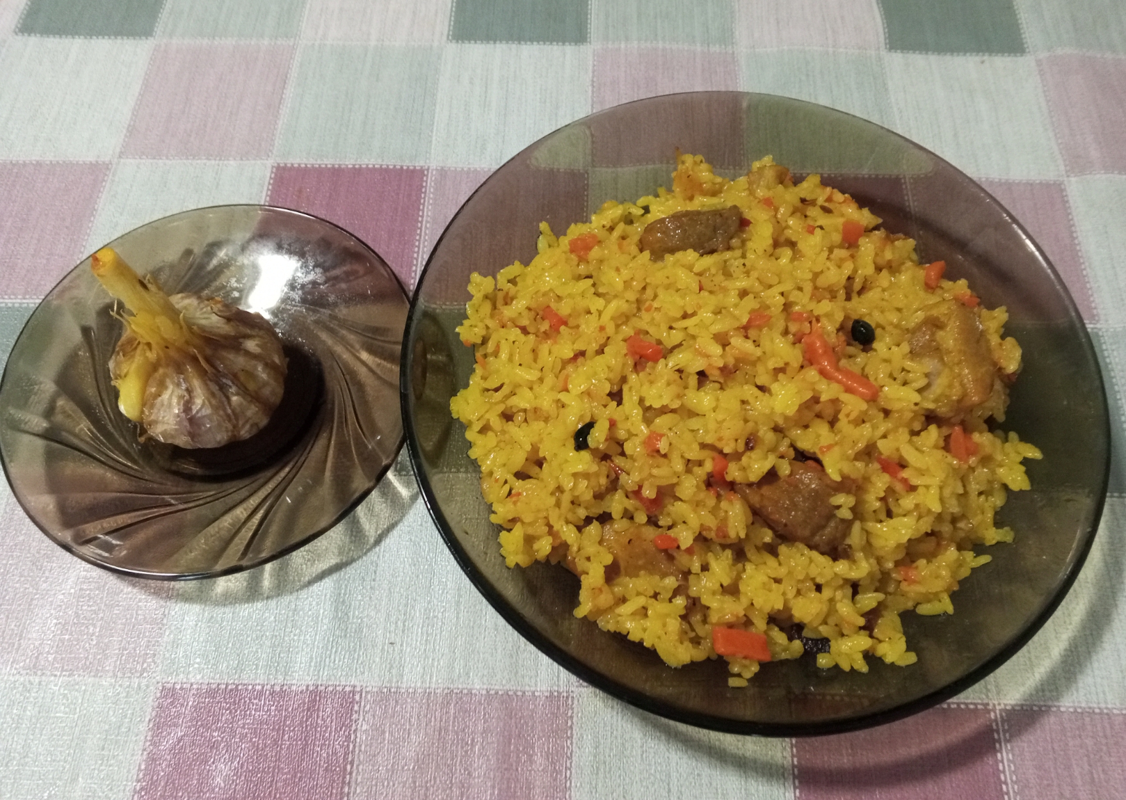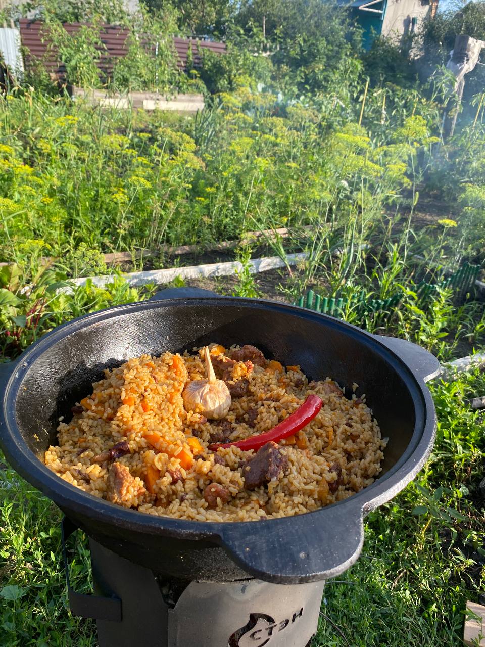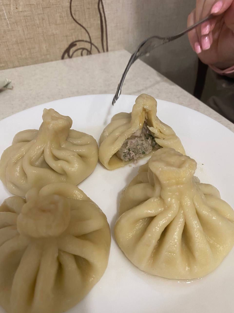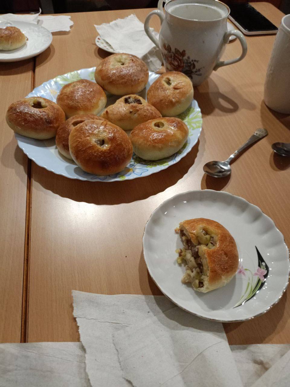 Хинкали с бараниной, курдючным жиром и специями (кинза/чабер) Крамольный хачапури по-аджарски с адыгейским сыром вместо имеретинского (уж извините, другого в своем пгт на 20к не нашел) Элеш с говядиной, грибами и картофелем Плов по-фергански